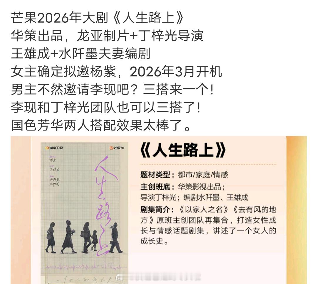 有爆料说杨紫李现即将三搭,还说杨紫新剧男主男主不是欧豪。现在都在猜要么李现特出《玉兰花开君再来》,要么杨紫李现和国色芳华原班人马合作出演《人生路上》。