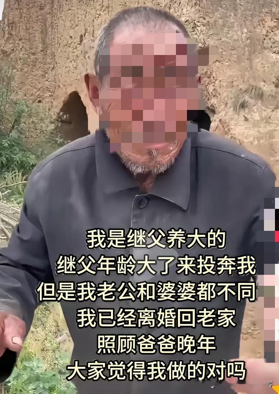 山东,一女子跟着继父长大,后来出嫁,继父失去劳动能力,便步行到女子家,想和女子一起生活,女子丈夫拒绝。为了感谢继父的养育之恩,女子离婚回家照顾继父。 女子赵喜花(化名)不到一岁时,父亲意外身亡,母亲改嫁。继父与母亲算是头婚,继父人特别好,对赵喜花那是视如己出。 让人难过的是,母亲嫁过去没多久,也突发疾病而亡。留下年幼的喜花独自生活在这个世界上。 喜花的继父比喜花的母亲要大11岁,家境贫寒。喜花母亲这一去,更是很难再娶上妻子了。 母亲去后,继父将喜花留在身边照顾。继父即当爹又当妈,把喜花拉扯大以后,看着喜花出嫁,继父打由心里高兴。 后来,继父年龄大了,去投奔喜花,可喜花的婆婆和丈夫极力反对,丈夫还放话,如果让继父过来,两人就离婚! 喜花瞒着继父放弃了自己的家庭,和丈夫离婚后,全身心的照顾继父。也算是报答了继父这么多年的养育之恩! 对此,网友表示: 再找个愿意和你一样照顾继父的男人,人老了,只要不生病,生活费用不了多少线。 舍弃自己的丈夫,义无反顾照顾对有自己养育之恩的继父,真值得敬佩啊! 那种男人离开最好,你今天有利用价值他就利用你,没有利用价值时他连你都抛弃! 各位读者,你们怎么看?欢迎评论区留言讨论!