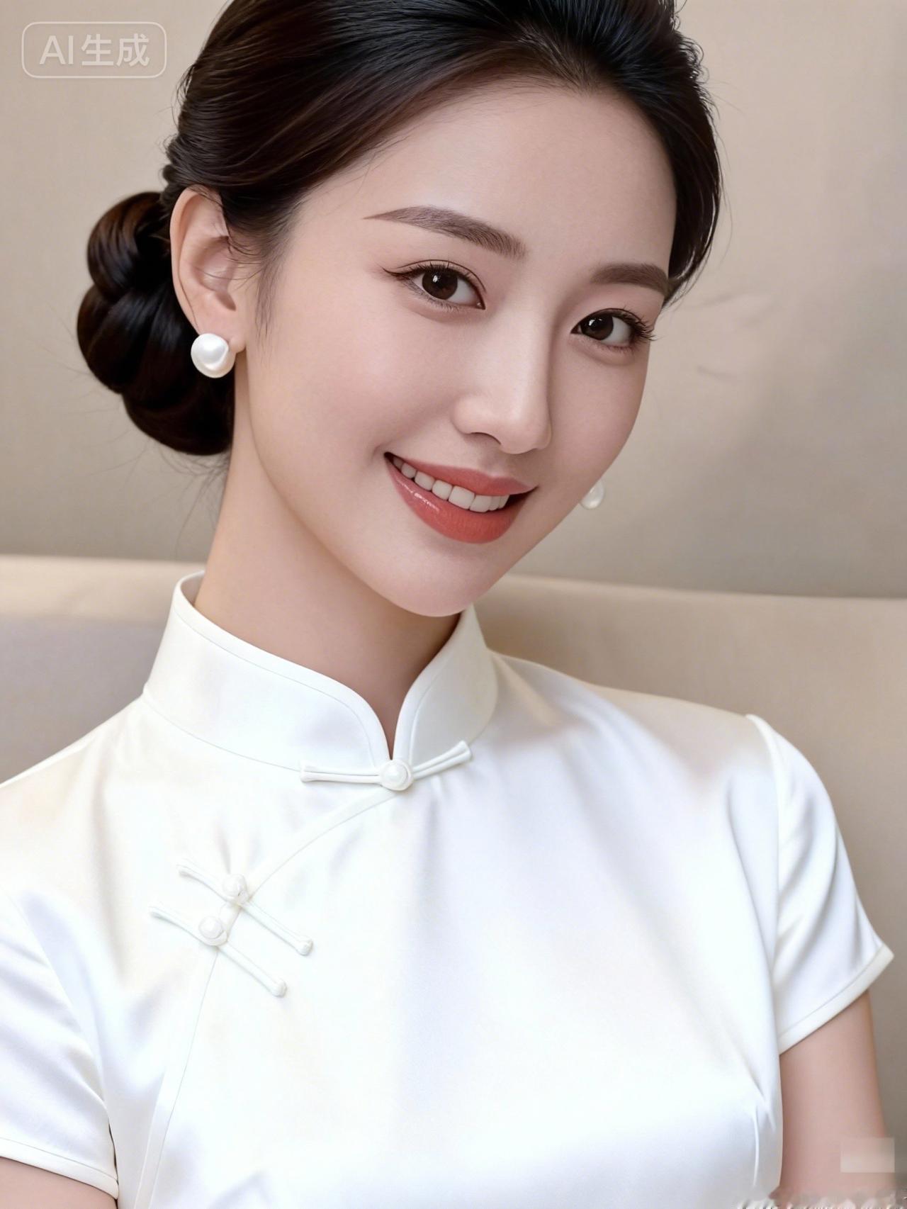 优雅复古风,珍珠项链与黄色旗袍的完美搭配,尽显东方韵味。