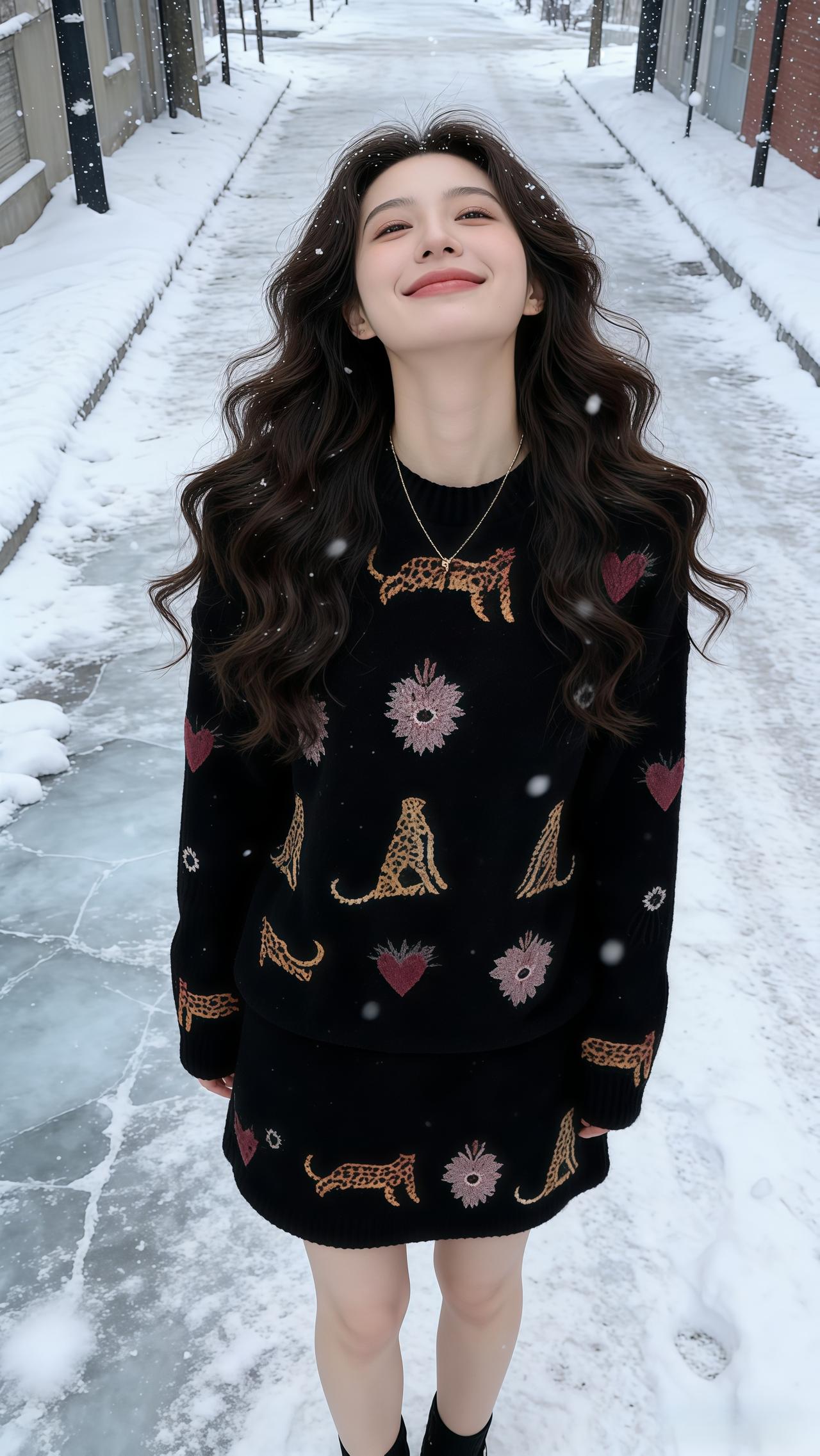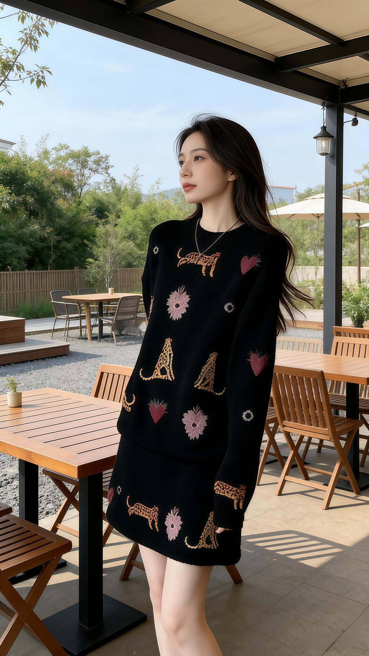 草编帽滤过的光斑里,黑玫瑰缀在抹胸裙肩。红唇碰着冰饮的凉,长发被风揉得散漫——是