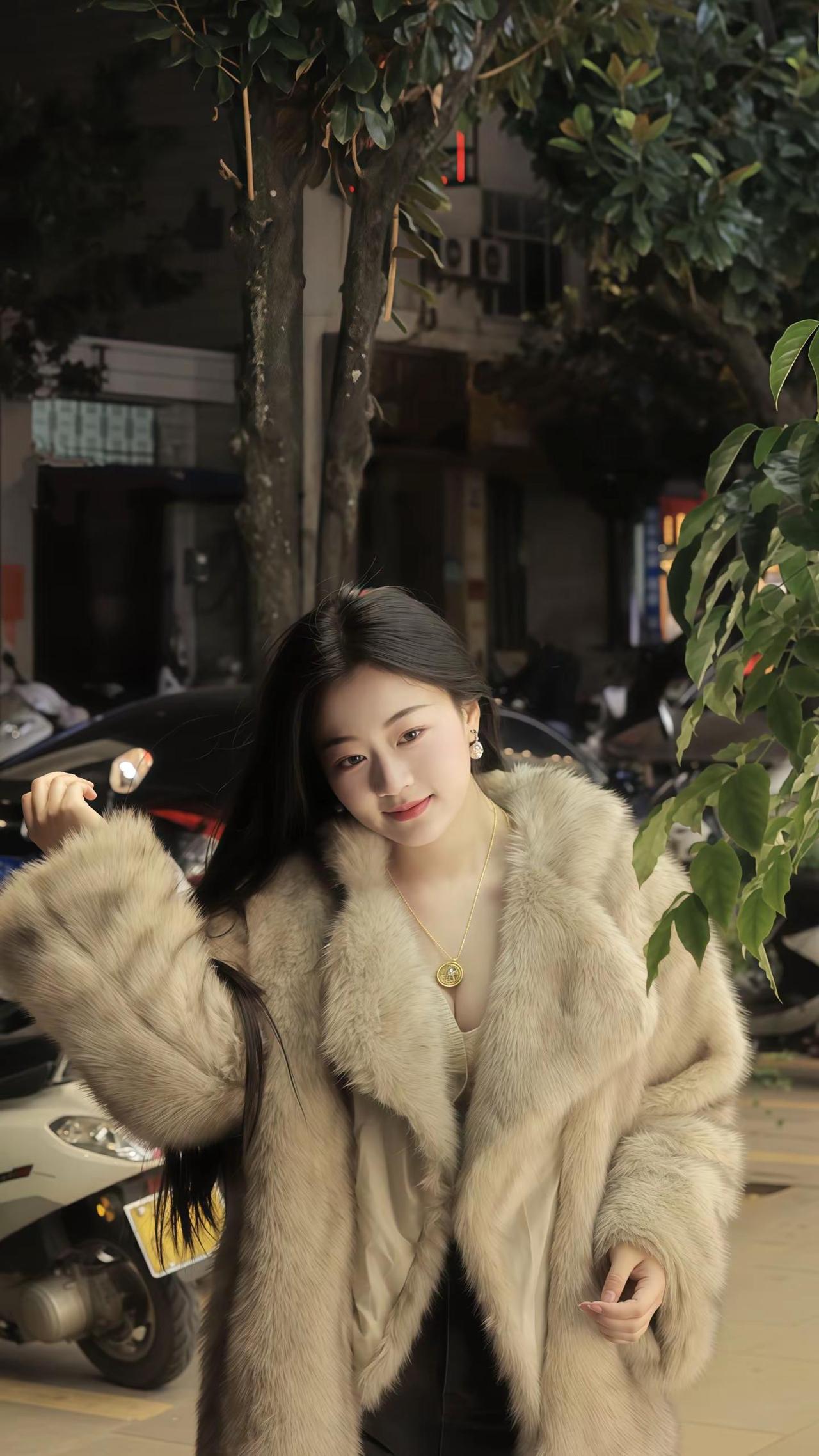 夜晚的街头,她手持相机,留下美丽瞬间。