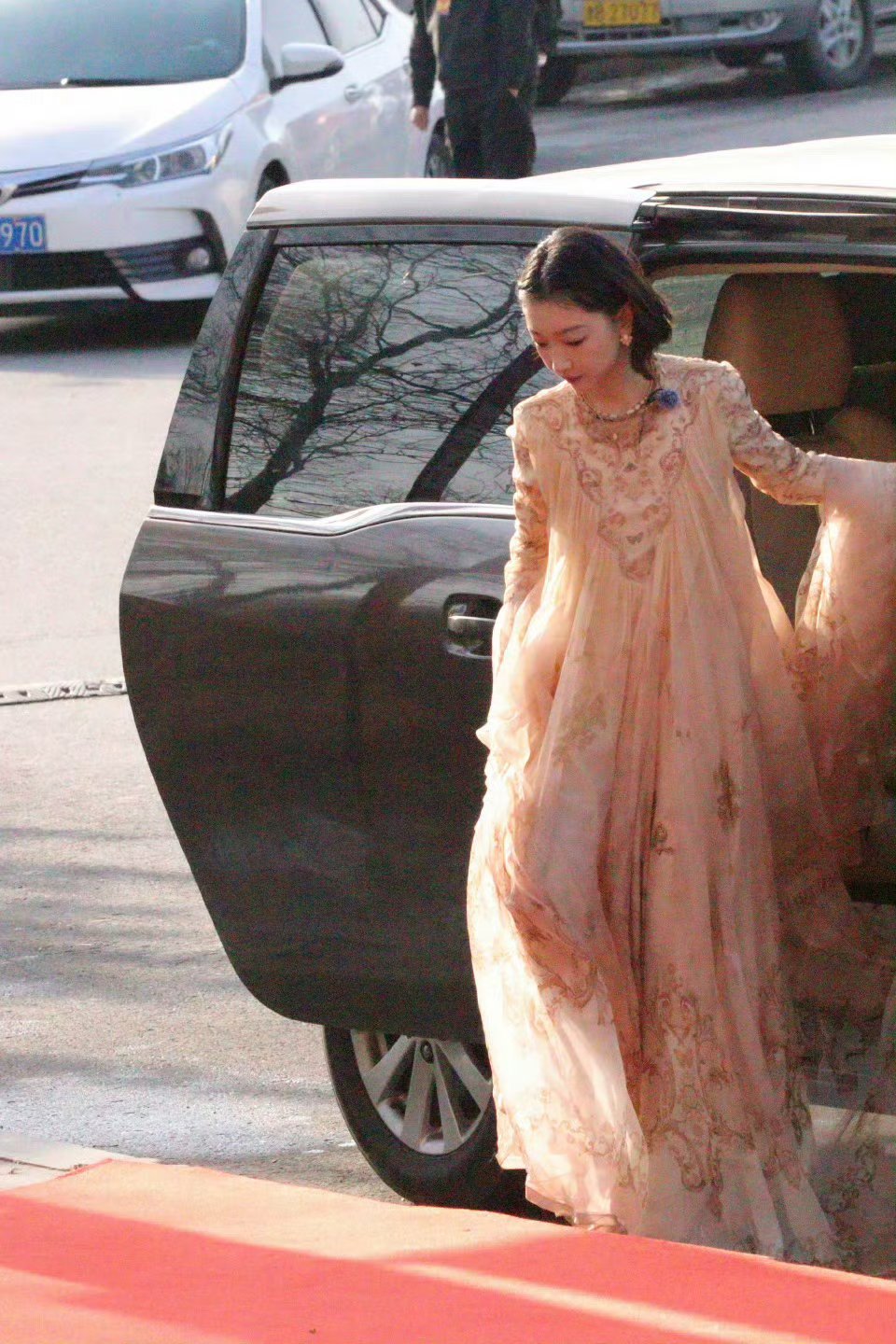刘亦菲这一身衣服太丑了,用花挡住了才觉得好一点,全靠脸撑着