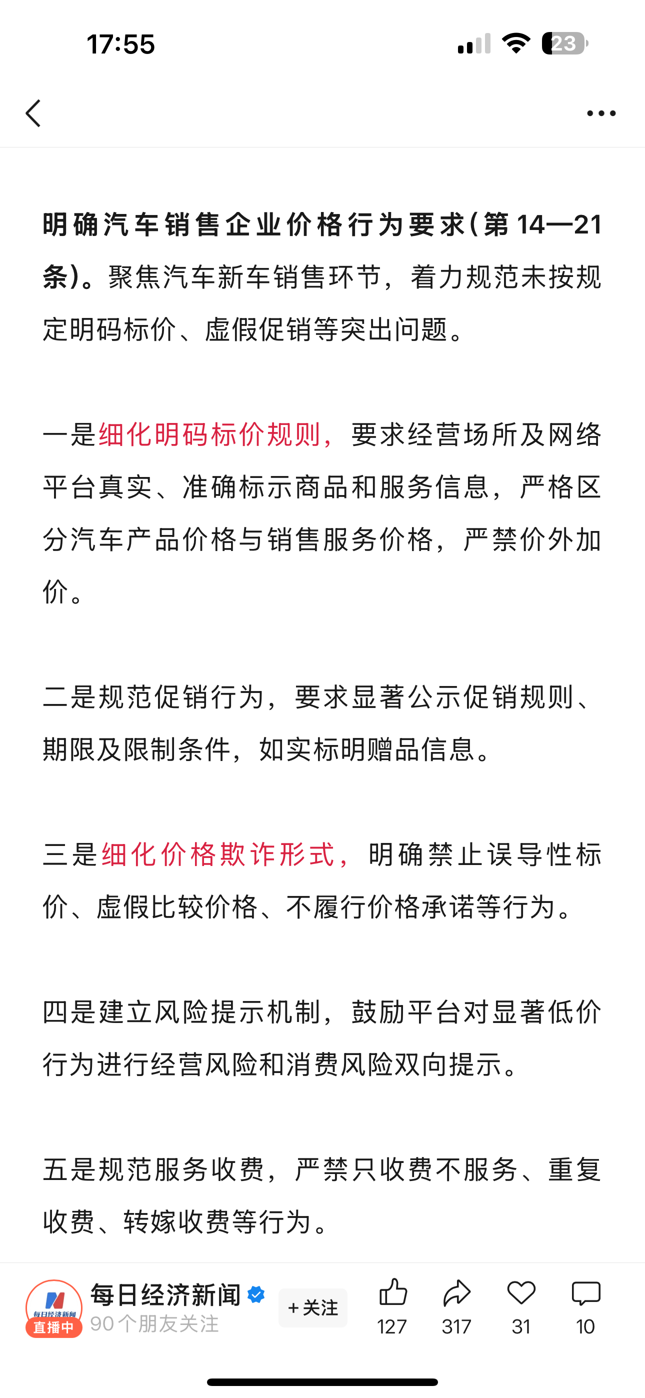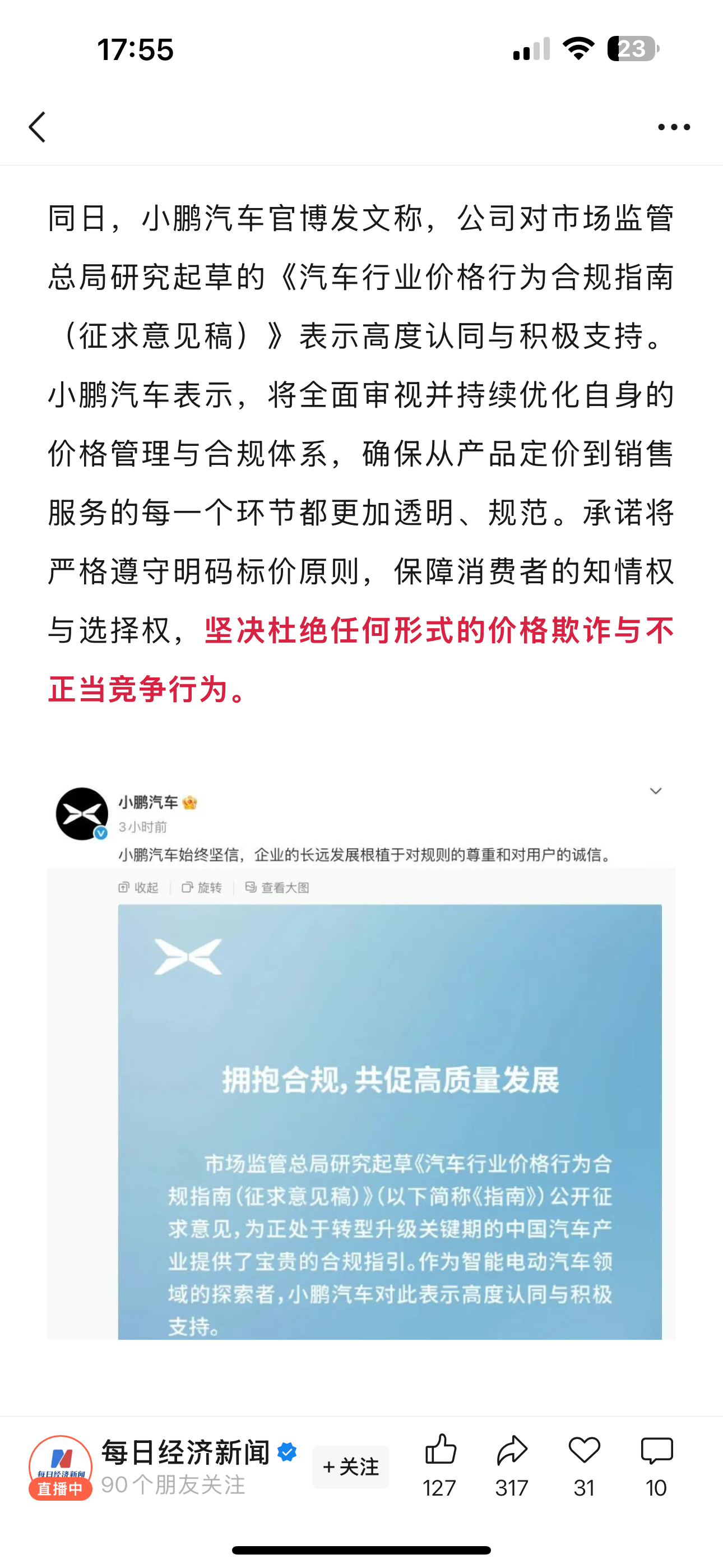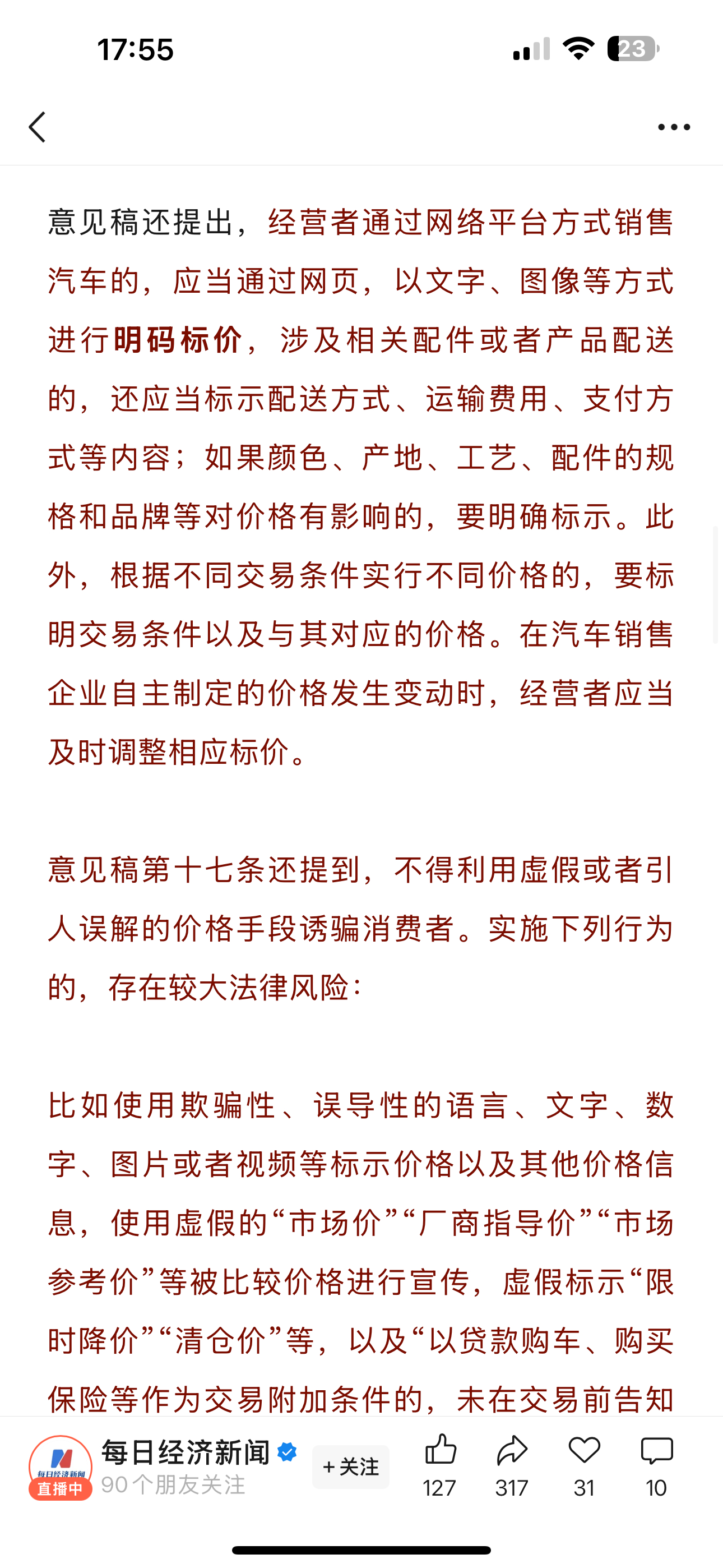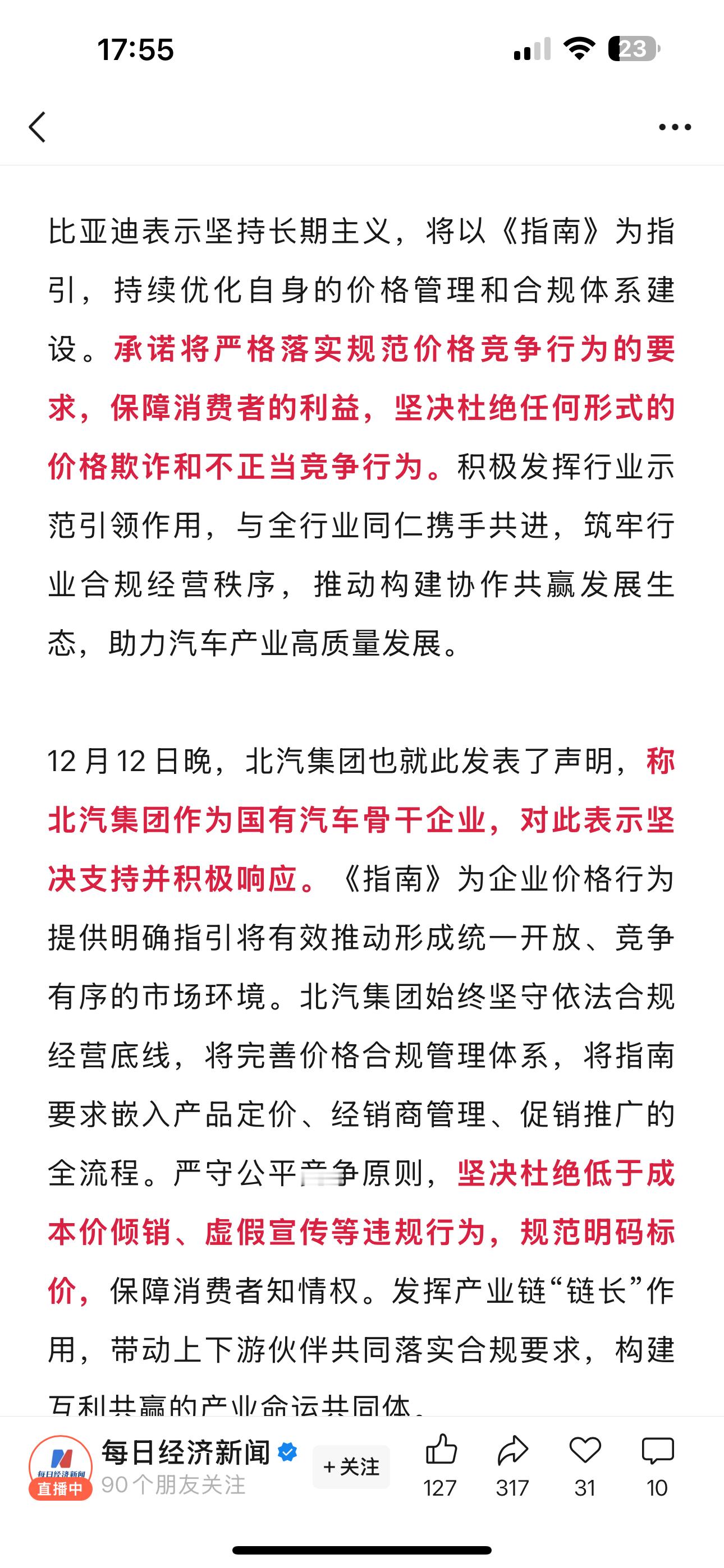 国家发文禁止亏本卖车 “卖车须明码标价”,市场监管总局征求意见:不得用虚假“市场价”“厂商指导价”等进行宣传!比亚迪小鹏北汽迅速响应!挺好的!支持国家新规!买车再也不怕被套路了!车企们也都表态跟进,希望以后价格更透明,等的每辆车都准时交付!买车卖车