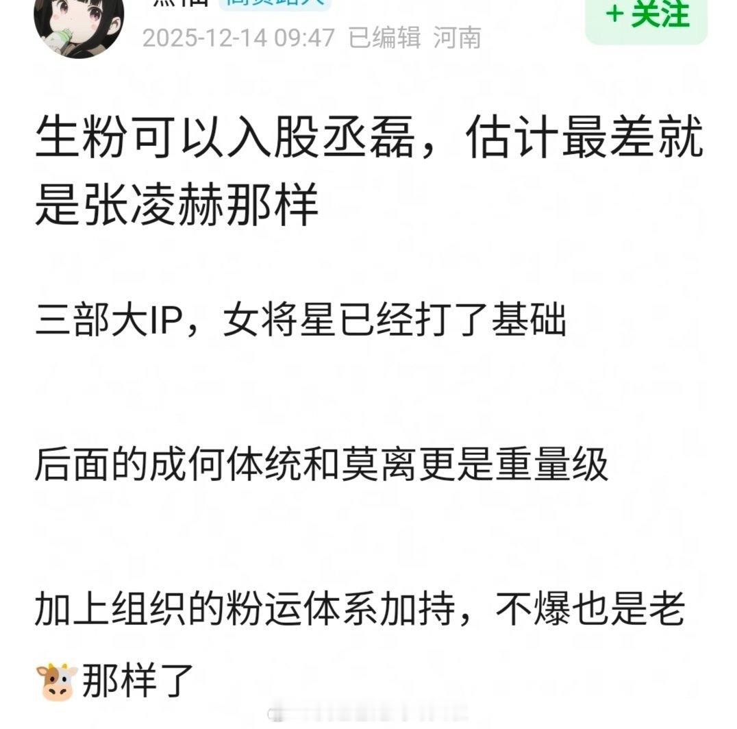 生粉是不是可以直接入股丞磊了?女将星大ip打底,成何体统和莫离也是重量级, 玉覃秋看着也很有爆相