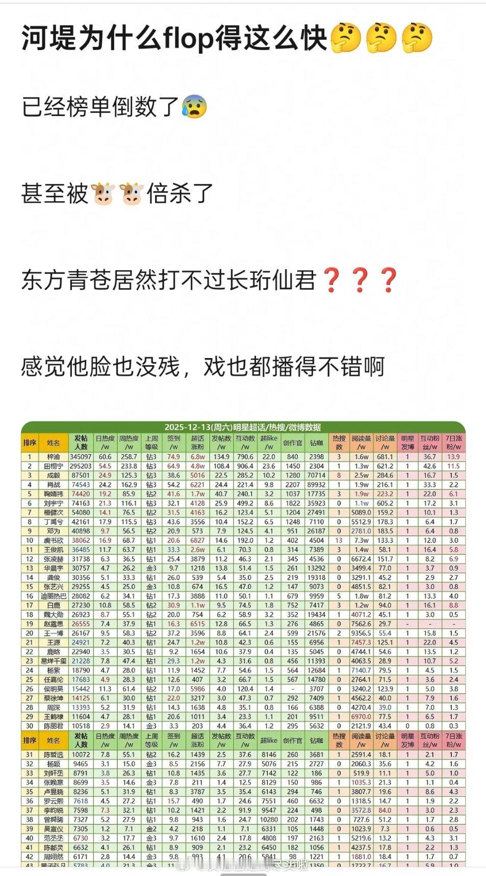 最新超话数据抽查,王鹤棣才排29,网友感叹东方青苍居然被长珩仙君倍杀了今天明明《大奉打更人》播得还可以,王鹤棣给人感觉存在感不强呀?因为今年只播了一部剧吗?