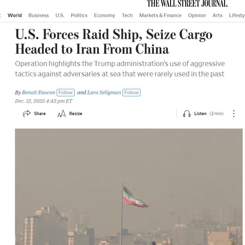 美国对中国下重手,做出一个前所未有重大举动。 美国时间 12 月 12 日,《华尔街日报》捅出个天大的事:上个月,美军特种作战小组在印度洋,也就是斯里兰卡海岸数百英里外的公海上,公然突袭了一艘从中国驶往伊朗的商船,号称 “缴获了军事相关物品”,结果连个证据都拿不出来,还把所谓的 “违禁货物” 当场销毁! 这操作熟不熟悉?32 年前 “银河号事件” 里,美国也是靠莫须有的情报扣船检查,折腾 33 天最后啥也没找到,如今不过是把 “检查” 升级成了 “当场销毁”,连装样子的调查环节都省了。 更讽刺的是三天前的 12 月 10 日,美军刚在委内瑞拉海岸劫了艘 30 万吨级的超大型油轮,理由又是 “和伊朗有关”,出动直升机加特种部队,跟抓通缉犯似的,结果被委内瑞拉外长骂成 “无耻的盗窃”。 这哪是第一次?2020 年美国就拦截过 4 艘号称 “伊朗籍” 的油轮,硬说船上 110 万桶汽油是给伊朗革命卫队筹钱,结果伊朗大使直接打脸,说油轮根本不是伊朗的,纯粹是美国撒泼抢东西。 2021 年更过分,在阿联酋海岸扣了艘伊朗油轮,把 200 万桶石油拉到德州以 1.1 亿美元卖掉,赚得盆满钵满,伊朗那边连句解释都没捞着。合着公海成了美国的提款机,看见不顺眼的船就拦,拿不出证据也能硬抢,这海盗生意做得比索马里那帮人专业多了。 美国这么上赶着当 “公海警察”,根本不是为了什么 “维护安全”,全是算计。先说中东那边,中伊沙三方刚在德黑兰开完会,重申要落实《北京协议》,甩开美国搞合作,这可戳了美国的肺管子。 要知道中东是美国霸权的命根子,以前靠着军事基地和盟友体系说一不二,现在沙特伊朗握手言和,还拉上中国玩经济合作,美国的存在感快没了。 所以才急着拿中国商船开刀,一方面是警告沙伊 “别脱离美国轨道”,另一方面想搅黄中伊贸易,断了伊朗的物资渠道,毕竟伊朗导弹计划要是靠中国零件起来了,美国在中东的战略布局就得崩。这心思跟小学生抢玩具似的,自己玩不转就掀桌子。 再就是冲着中国来的,这些年中伊在国际法框架内做正常生意,美国看在眼里急在心里。这次拦截中国商船,明着是针对伊朗,实则是试探中国的底线,跟 32 年前 “银河号” 那会儿一样,想看看如今的中国还能不能随便拿捏。 更阴险的是想抹黑中国,暗示 “中伊合作有军事风险”,削弱中国在中东的公信力。可美国忘了,现在不是 1993 年,中国海军在印度洋有常驻编队,真要动真格的,美国未必能讨到好,也就是捡着公海这种地方搞偷袭,算准了商船没武装反抗能力。 最可笑的是美国这套 “法律依据”,说白了就是 “我的规矩就是规矩”。《联合国海洋公约》明明写着公海航行自由,船舶是船旗国领土延伸,可美国根本不管,拿着自家制裁法律当尚方宝剑,搞 “长臂管辖”。 联合国人权理事会特别报告员早就说了,美国这些单边制裁违反国际法,还专门出了报告骂它侵犯人权。 去年人权理事会开会,俄罗斯、古巴、津巴布韦一大帮国家跟着中国批美国,说它的制裁让普通老百姓吃不上饭、看不起病,纯粹是拿人权当幌子搞霸权。 就拿这次被拦的中国货物来说,有消息说是高氯酸钠,这东西本来就是工业原料,卖出去既不违反国际法也不违反西方制裁,美国非说能造导弹燃料,纯属强词夺理,反正嘴长在它身上,说你违禁你就违禁。 美国自己也知道理亏,所以每次都搞 “三无操作”:无实锤证据、无国际法授权、无公开透明流程。截中国商船时找 “不具名官员” 放风,扣委内瑞拉油轮时只敢发段模糊的行动视频,连船的具体信息都不敢报。 反观它给以色列送武器,一年几十亿美元的军援,把中东搅得鸡犬不宁,却从来不觉得自己 “破坏地区安全”。这种双标玩得炉火纯青,也难怪国际社会越来越不买账。 更要命的是这事儿还带连锁反应,美国一拦船,全球航运业都得跟着遭殃。2025 年的数据显示,受美国扣押油轮影响,航运保险成本蹭蹭往上涨,不少船公司被逼得改航线,绕远路增加的成本最后全摊到消费者身上。 能源市场更乱,上次扣完委内瑞拉油轮,国际油价立马走高,美国自己倒是赚了卖石油的钱,苦的是全世界的普通民众。这就像小区里有个恶霸,看谁不顺眼就抢谁的东西,最后整个小区的物价都被搅高了,大家还敢怒不敢言。 可美国再横也捂不住天下人的嘴,委内瑞拉骂它海盗,伊朗斥它撒谎,中国在联合国领着一群发展中国家怼它,连它自己的盟友都未必真心认同。毕竟谁都怕哪天自己的船也被美国盯上,今天能拦中国、委内瑞拉,明天就能拦法国、德国的船。说白了,美国这套 “霸权海盗术” 就是在透支自己的信用,等哪天大家都不买它的账,公海再也不是它的后花园,这出闹剧也就该收场了。