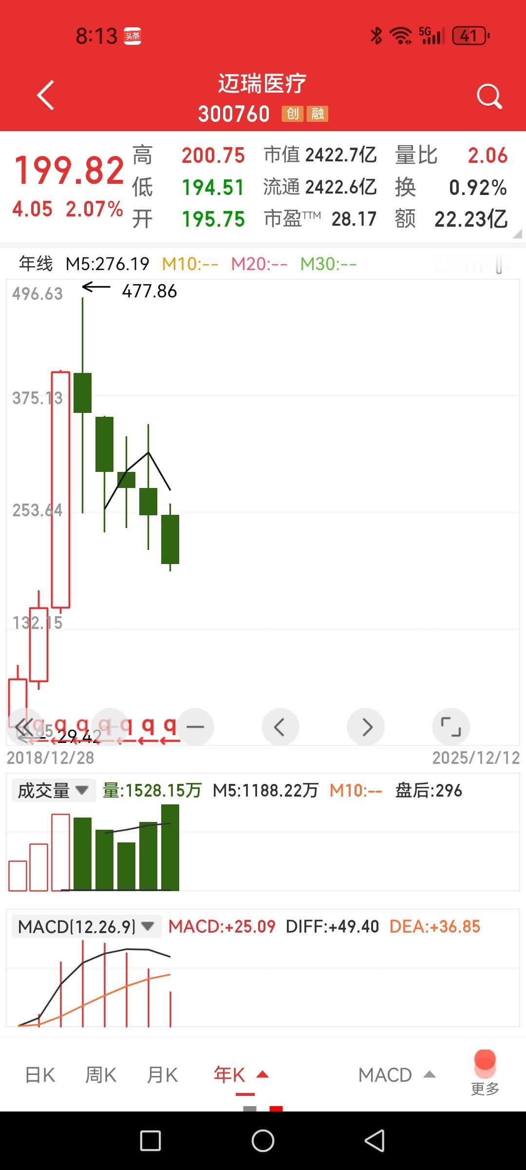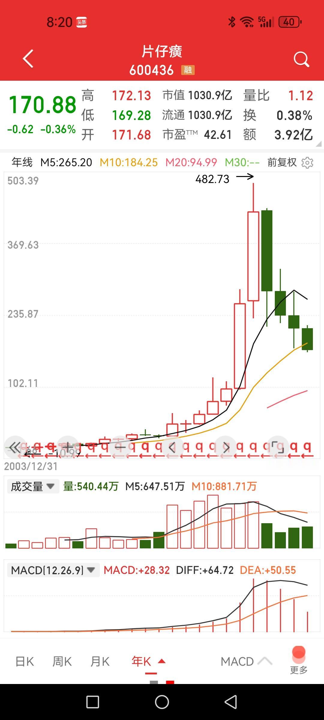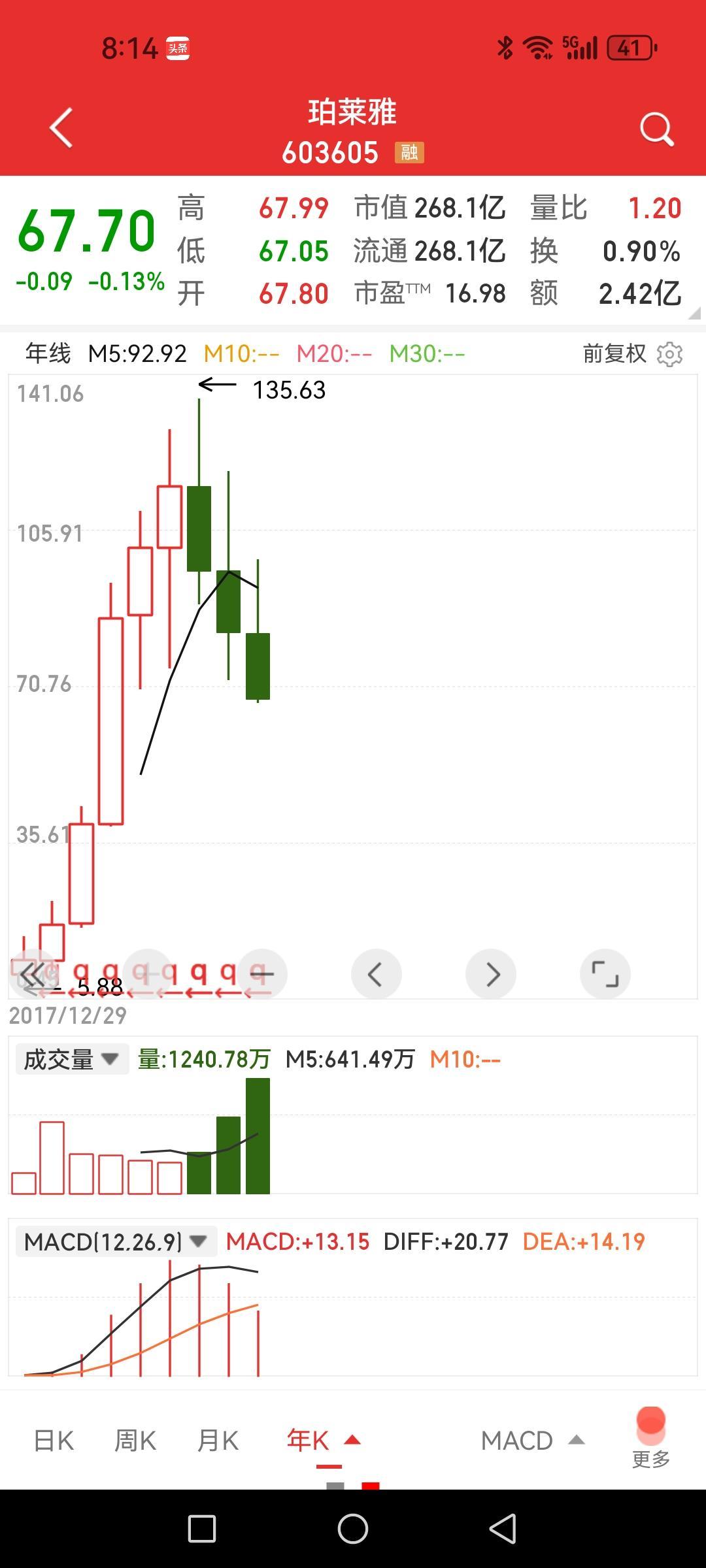 复盘一些超级品牌消费股简直热泪盈眶,当初是靠什么信仰把股价炒上去的? 珀莱雅、贝泰妮、爱美客连跌三年,今年分别下跌18.15%、37%、21%,前者市盈率16.98还算低,贝泰妮高达48就不好看了,爱美客28也不低。 涪陵榨菜、五粮液五年中跌四年,其中去年分别微涨1%和3.9%,市盈率分别为18.3%、15.2%。二者今年分别跌7!5%和16.9%。此外片仔癀四连跌,今年跌19%,市盈率42,是高是低不知道,大家自己评判。 迈瑞医疗、爱尔眼科、洋河股份连跌五年,数据都懒的去统计了,体会不到里面的股东是啥滋味。其中迈瑞医疗和爱尔眼科都是妥妥的刚需啊,而且需求随着老龄化改在加强,难道要连跌六年?我真不敢想象。 当然迈瑞医疗2020年涨了159%,后面五年还没跌完2020年的涨幅,但人家营收和利润比2020年还是增长了一些啊。所以,情绪溢价在任何类型的股票里都有,回归内在估值水平是最终的选择,无论是上涨溢价和下跌溢价。