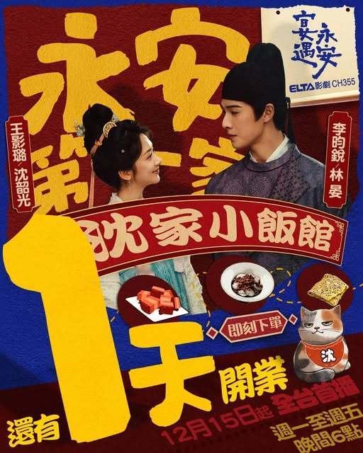 李昀锐王影璐《宴遇永安》明晚六点中国台湾爱尔达影剧台全台首播宴遇永安 王影璐李昀