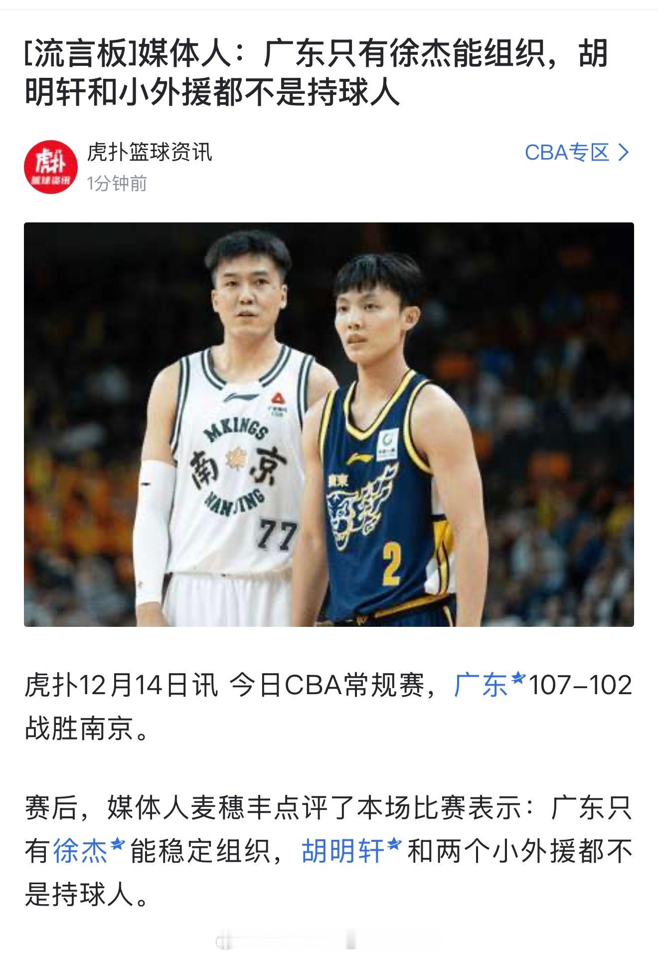 在国家队比赛胡明轩都是持球人,怎么回到广东队就不是持球人了?这个道理行不通吧