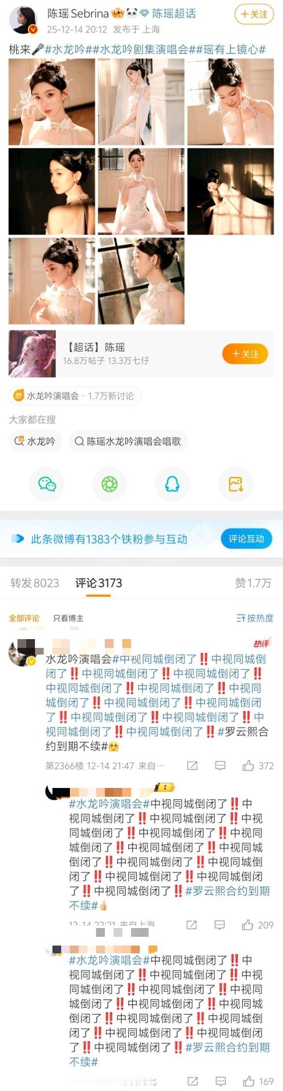 罗云熙 好听 今天《水龙吟》演唱会,陈瑶营业微博被罗云熙粉丝追着讨伐....有气只会对女演员撒???