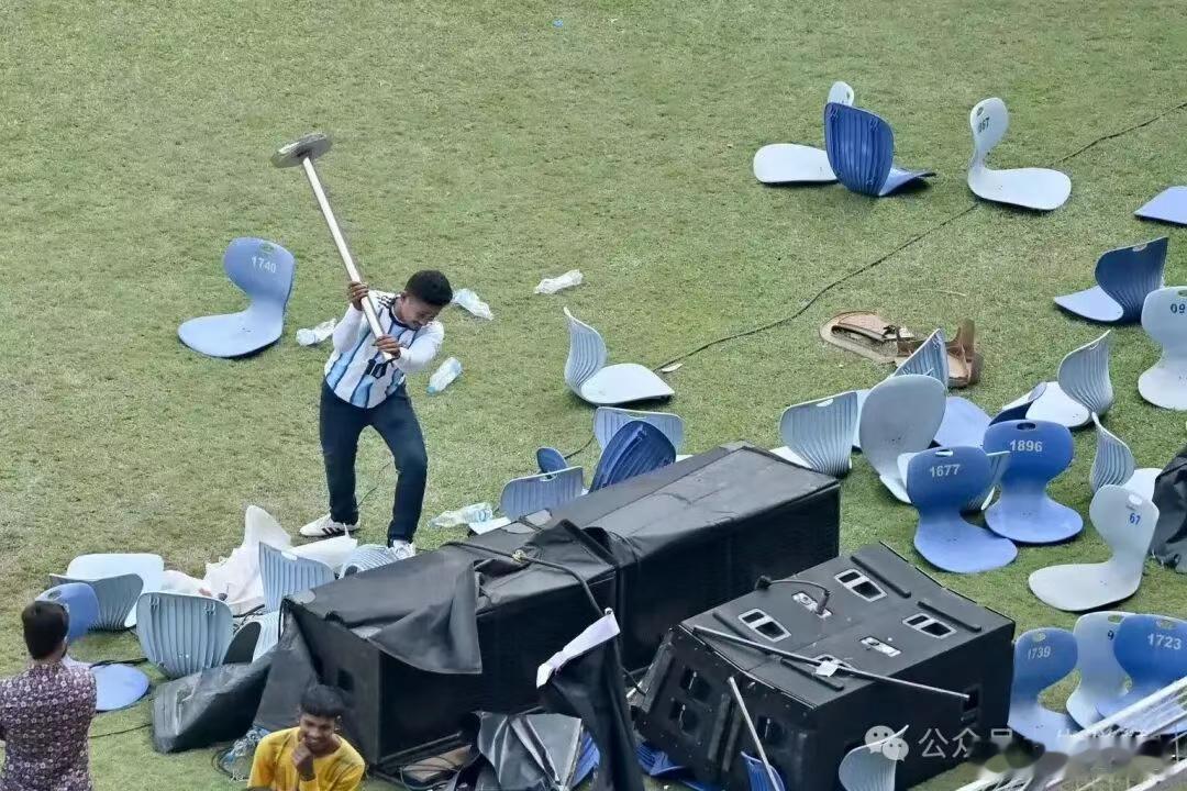 印度人发飙了看现场图片和视频,真是让人大吃一惊,印度人失望到了极点,对梅西发飙了。没错,就是那个足球传奇的梅西。激动的印度人,不顾阻拦冲入足球场,各种呐喊抗议;更愤怒的印度球迷,打砸球场的白色座椅,然后扔到绿茵场上……要多狼藉就有多狼藉,要多混乱就有多混乱。根本不像是一个比赛场,感觉更像是一个杀戮场。印度人很愤怒,对梅西,对组织者。看媒体介绍,12月14日,梅西开始2025年印度巡回活动,西孟加拉邦的加尔各答是第一站。很多球迷花1.2万卢比(折合近1000元人民币)的高价,来到加尔各答盐湖体育场,一睹梅西真容。哪知道,梅西只露面了22分钟,就在人们簇拥中扬长而去,原先绕场一周没有走完,更远低于原先宣传所说的他会出场45分钟。让球迷更气愤的是,即便22分钟,梅西周边簇拥着一大堆的官员、嘉宾以及安保人员,人们根本就看不清,究竟哪个人头才是梅西。印度人很失望,球场开始骚动,梅西一走,更一发而不可收拾。可怜很多椅子倒了大霉,有些估计还能安装回去,但很多已经被彻底砸碎,再也不能回到体育场了。一位球迷就痛骂:“只有政客和演员能围在梅西身边,那为什么要让我们来?我们花了1.2万卢比买了票,却连他的脸都看不清。”另一位沮丧的球迷表示,“警察当时为什么不采取行动?我完全无法理解。所有人都很愤怒……我们要求退款。”很多印度人表示,他们支付了整整一个月的工资,就想来看一下梅西;哪知道钱花了,人影都没看到,组织者让人很失望,梅西更让人失望。事情闹大了,当地政府赶紧介入。西孟加拉邦首席部长玛玛塔·班纳吉,立刻就此事件道歉,她说自己“深感不安和震惊”,并下令成立调查委员会展开调查。“我当时正前往体育场参加活动,和成千上万的体育爱好者和球迷一起聚集在那里,希望能一睹他们最喜欢的足球运动员利昂内尔·梅西的风采。”班纳吉说,“对于这起不幸事件,我真诚地向利昂内尔·梅西、所有体育爱好者和他的球迷道歉。”班纳吉估计也很无奈,作为当地政府最高官员,她还在去球场路上呢,梅西就走了;而且,还留下这么一个烂摊子,她还不得不道歉。梅西方面怎么说?我看到,BBC引述梅西经纪人的话说,梅西履行了事先商定的时间承诺。 关于活动本身的组织,经纪人则转述了班纳吉的道歉。最后,怎么看?类似的事件,其实挺多的,我也不是球迷,就是作为一个旁观者,完全个人看法的粗浅三点吧。第一,真不能把球迷当韭菜。一张门票,近乎印度人一个月的工资,这是真把印度球迷当韭菜割啊。但如果整整齐齐地割,估计印度球迷还很快乐,终于见到了世界巨星梅西,他们也不至于这样发飙,以至于要将球场椅子砸到粉碎。这肯定是印度方面组织管理上的严重不善;但从骨子来看,这更是对球迷的极度不尊重,只是想借着梅西的名头,从印度人身上赚更多的钱。但期望越高,跌落时的伤痛便越深;这不仅是金钱的损失,更是情感信任的崩塌。现在,印度人的情绪价值不仅没有满足,反而受到了一万点的侮辱和伤害。印度球迷的愤怒,也就可以理解了。第二,官员嘉宾要有自知之明。印度人是花钱来看球星的,不是来看你们的。但你们总是簇拥在他身边,所到之处,前呼后拥,果然很排场。球星可能高兴,也可能未必高兴;但观众,肯定一万个不答应。还是要有自知之明啊。谁是主角?谁是配角?人生的舞台上,每个人都应找准自己的位置;错位不仅尴尬,更伤害那些仰望的目光。 但这种现象,就发生在印度吗?西方没有?东方没有?南方没有?但印度这种状况,显然已成为某种常态。但在爱憎分明的球场,这一次终于遭到了滑铁卢。第三,球星更要珍惜羽毛、要自重。谁都不会否认,梅西是一个伟大的球员。他创造了一个又一个传奇,也赢得了千千万万球迷的欣赏和喜欢。但印度加尔各答的事件,不由让人想起去年梅西在香港缺席的事件。香港举行中美两支球队友谊赛,香港刮起了梅西热,比赛现场座无虚席,吸引了4万多球迷。但结果呢?梅西外套都没脱,以受伤为由,根本就没有上场;但3天后,他精神焕发地出现在东京赛场……印度人的愤怒,相信我们香港同胞其实多少就能理解。但球场暴力肯定不对!球星身体也必须得到尊重!我只是想说,即便有些事件是组织方管理不善,但作为一个世界级球星,更应尊重球迷朴素的感情,尊重他们购买高昂门票的贡献,而不是敷衍式地挥一挥手,拿着钱快速离开,然后将一切问题推给组织方。哪怕合同免除了自己所有的责任和义务,但这种合同,你真不明白背后的猫腻?你觉得对得起球迷吗?盛名之下,是更重的责任;球迷的喜欢,不应被视为理所当然的馈赠。试想一下,即便梅西在香港真受伤,但球场上真诚一点,哪怕慢慢走,走个大半圈,解释一下自己身体状况,我想球迷肯定都会谅解;在印度哪怕真不想上场,但多少有一点互动,我想再狂热的印度人,估计也会接受的吧。但该有的真没有,不该有的却偏偏有。最后一地鸡毛,真是让人一声叹息!但受伤害最大的,肯定还是印度,我看到,一些西方人已经开始嘲笑:你看,印度人就是这样欢迎梅西的……
