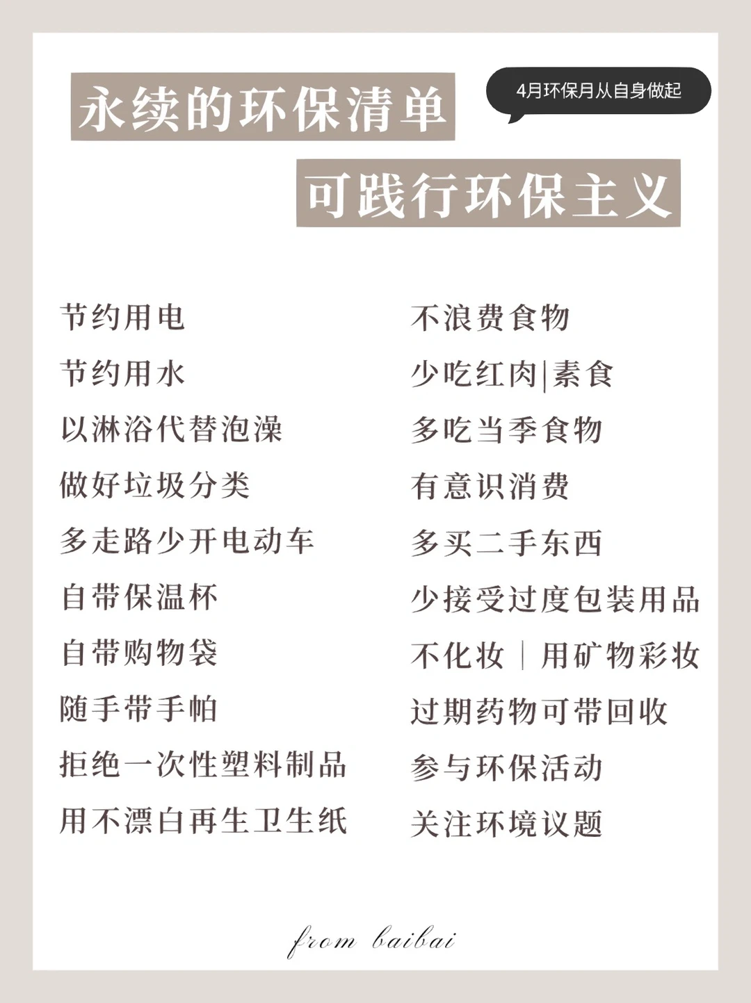改变的的力量是极大的。zui后分享环保行动清单给大家,一起保护我们的地球🌍。