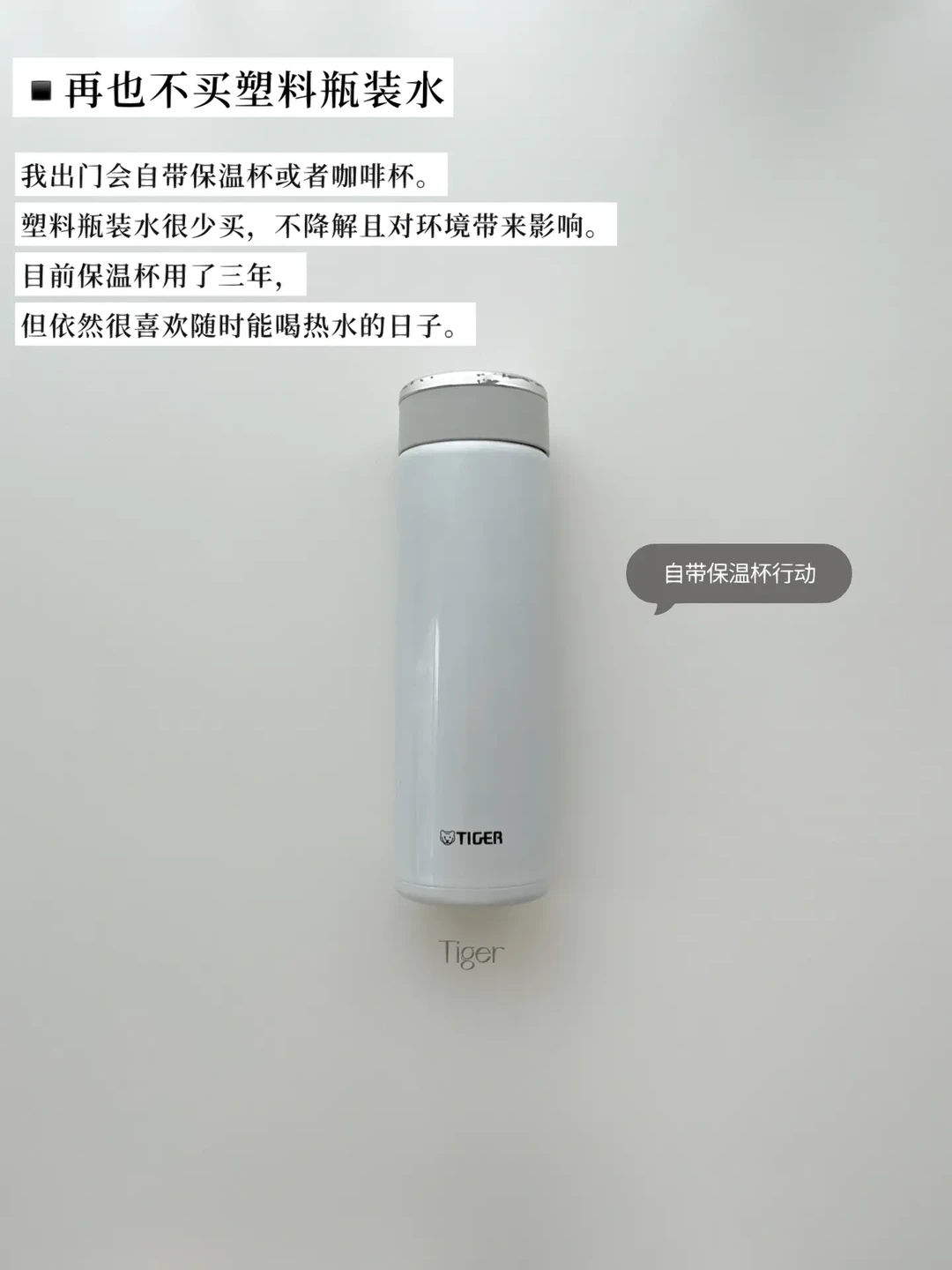 我出门会自带保温杯或者咖啡杯。塑料瓶装水很少买,不降解且对环境带来影响。目前保温杯用了三年,但依然很喜欢随时能喝热水的日子。