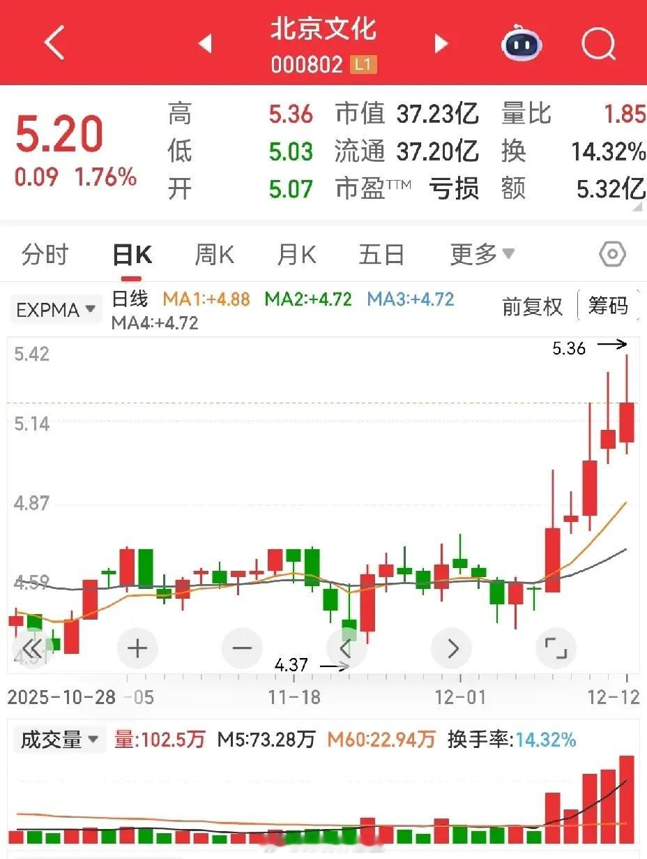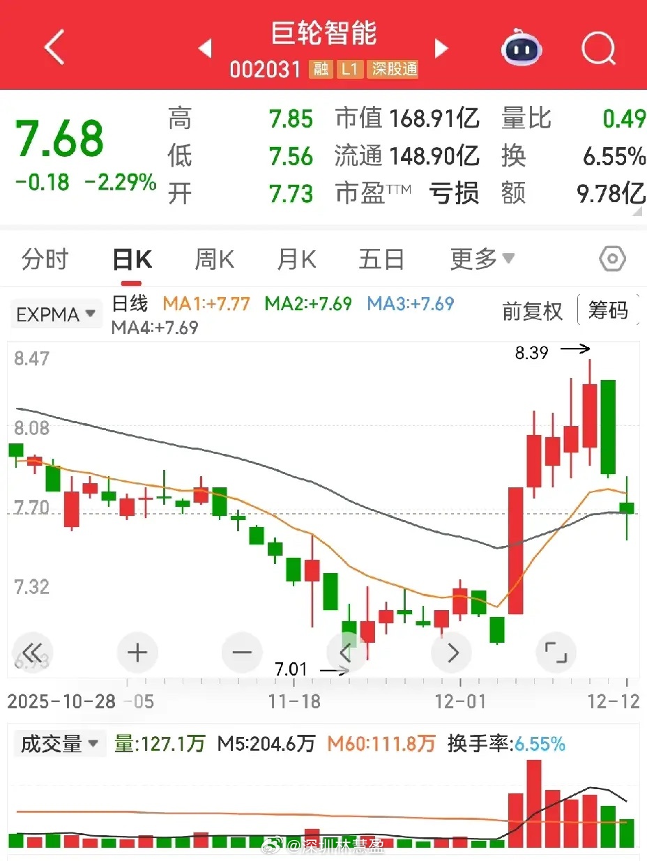 北京文化,金字火腿,巨轮智能。这一类堆量连阳缩量回调品种,一般会在连续堆量后有一个回调,重点是回调后在何处止跌,何时回升。北京文化,五连阳连续放量,这种形态有一些不回调,直接上的,但多数是要回调的,如果回调,观察何处企稳并且缩量。金字火腿和巨轮智能,皆为五连阳之后的回调,金字火腿缩量明显,看看后面几天是否会在生命线处横盘不跌,那时候也许是个那啥。巨轮智能,两天大跌,也缩量了,第二道生命线是个支撑,看主力如何运作。