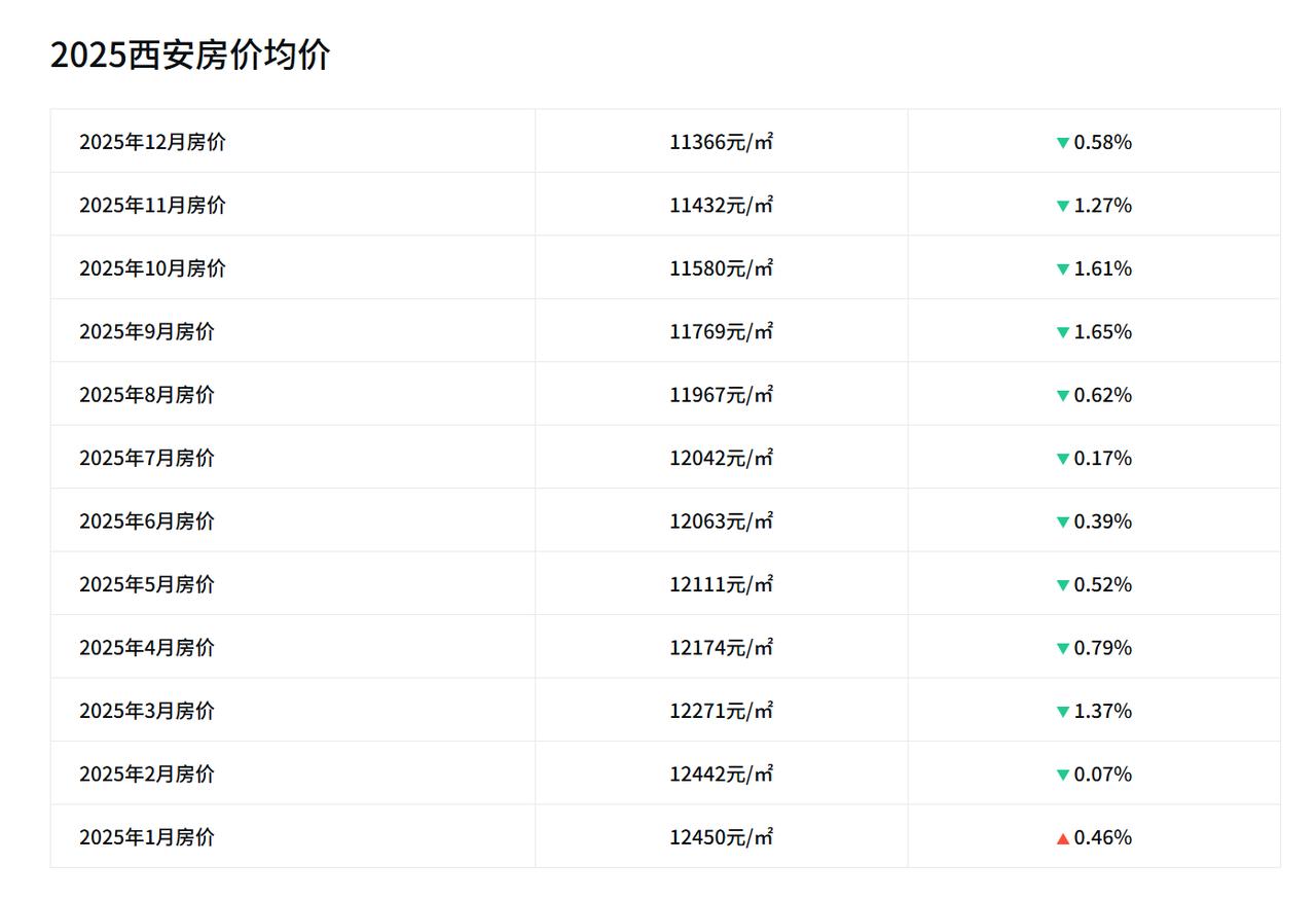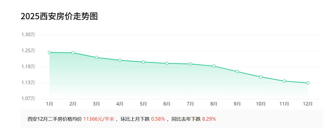 2015年11月,西安二手房均价6491元; 2016年11月,西安二手房均价6358元; 2017年11月,西安二手房均价8681元; 2018年11月,西安二手房均价12241元; 2019年11月,西安二手房均价12443元; 2020年11月,西安二手房均价12673元; 2021年11月,西安二手房均价14529元; 2022年11月,西安二手房均价15297元; 2023年11月,西安二手房均价14796元; 2024年11月,西安二手房均价12425元; 2025年11月,西安二手房均价11432元。 回顾西安过去十年的房价,从2015年11月的6491元,增长到2025年11月的11432元,一共涨了4941元,增幅达76.12%。 2025年11月的11432元环比2025年10月的11580元,下降了148元,比2025年1月的12450元,下降了1018元。 2025年前三季度,全市地区生产总值9641.94亿元,按不变价格计算,同比增长5.1%。 其中,第一产业增加值184.39亿元,增长2.9%;第二产业增加值2561.19亿元,增长5.7%;第三产业增加值6896.36亿元,增长4.9%。 2025年,西安的房价还是出现了一个比较大的降幅,降幅达到1018元。当然,核心地段的房价反而逆势增长,远郊地区的房价下幅较大,整体拉低了平均价格。 那么,在刚刚过去的11月份,大家对西安的房市有什么切身的感受和见闻,在评论区聊一聊。
