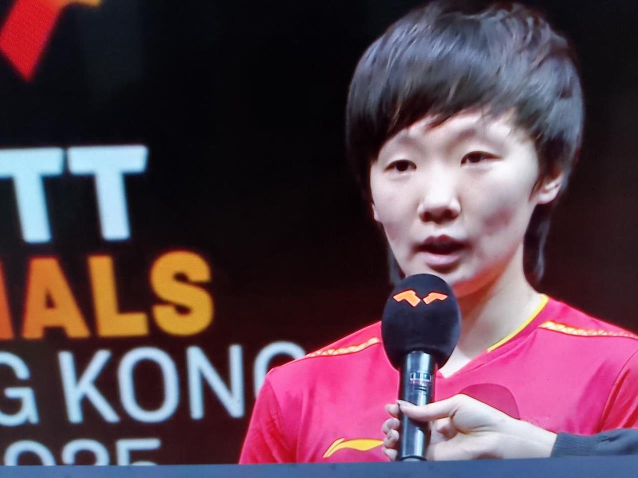 邓亚萍分析指出:蒯曼不到最后关头,就不会果断,落后才知道下手狠。蒯曼应该是我想怎么打,就怎么打,不是等落后才被动坚定。 王曼昱打得非常好,化解了蒯曼的速度,不给蒯曼借力的机会。 王曼昱与蒯曼两人奉献了一场精彩比赛。 蒯曼打出来近台快攻的高水平,绝不退台,一场比赛只退台一次。 王曼昱打出来她的超强反手,利用旋转和落点,克制蒯曼的速度。 王曼昱相持退台是打不过蒯曼的。 蒯曼还是需要历练,虽然给王曼昱制造很大难度,但还是需要历练。 王曼昱蝉联总决赛女单冠军,实至名归。 蒯曼进步很大,但心态还是需要加强。 恭喜王曼昱蝉联WTT总决赛女单冠军。