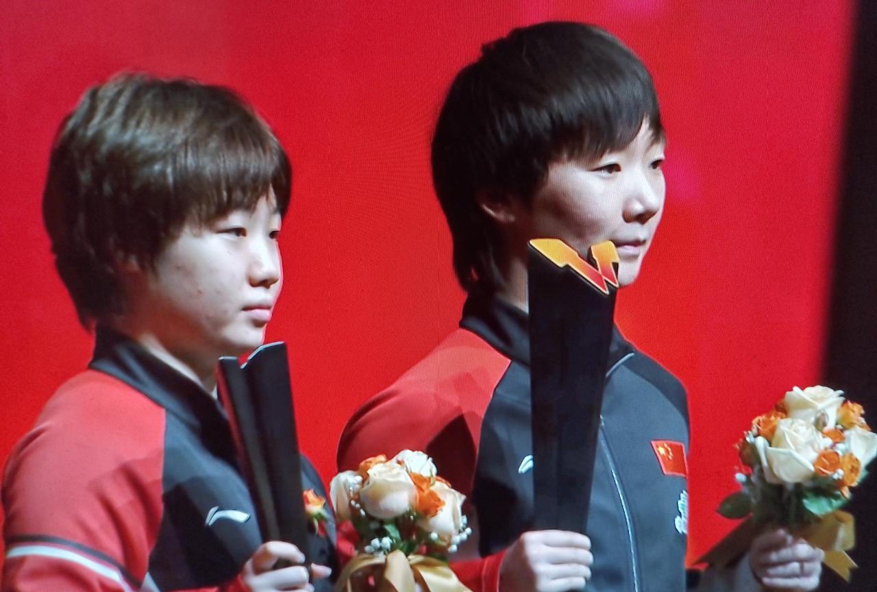 香港总决赛颁奖仪式图片来了,但好像总缺少点啥? 刘国梁不来颁奖了, 王励勤也没上去。 张怡宁更是没上去。 全场的狂呼好像降低了不少,但为女单颁奖的欢呼还是有的。 最后张本智和与王曼昱合照,还主动屈膝,降低身高,哈哈! 但最后王曼昱已经走得很远了,挥手致敬观众。 而张本智和却依然恋恋不舍,慢慢移动脚步,上台阶。 毕竟是难得拿到总决赛男单冠军呀! 再次恭喜王曼昱蝉联夺冠! 蒯曼也是有收获,亚军积分和奖金也是丰厚。 (最后一幅图,是全场观众在颁奖时,并不是全空)