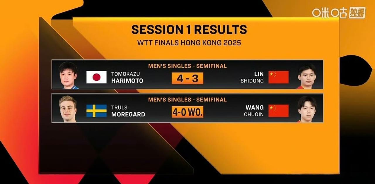林诗栋输球了,王楚钦因伤退赛了,男单比赛提前结束。 今天是WTT总决赛最后一天,