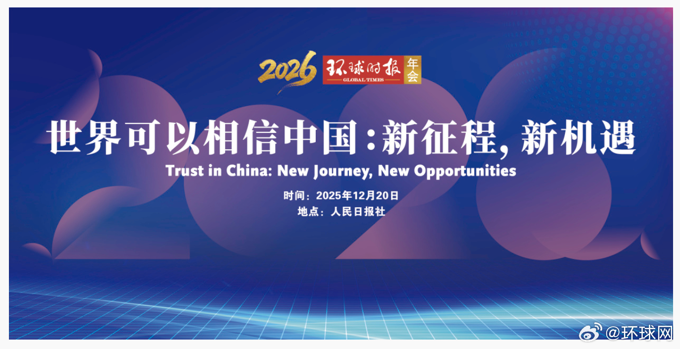 #聚焦2026环球时报年会#【2026环球时报年会即将举办 探讨世界何以相信中国】“历史告诉我们,越是困难时刻,越要秉持和平共处的初心,坚定合作共赢的信心,坚持在历史前进的逻辑中前进、在时代发展的潮流中发展。”2025年的世界,动荡变革持续,全球治理维艰。中国展现出的“稳”与“进”,持续为全人类发展注入确定性,提供新动能。这一年,国际形势变乱交织,冷战思维、霸权主义、保护主义阴霾不散,新威胁、新挑战有增无减:地缘冲突、政局动荡、安全危机和人道主义灾难愈演愈烈,凸显全球治理“失衡、失序、失能”;滥施关税、出口管制,单边主义甚嚣尘上,不断冲击多边贸易体制,扰乱国际经贸秩序,置全球经济发展于险境。这一年,中国坚持引领和平发展,促进世界稳定和繁荣。9月3日,纪念中国人民抗日战争暨世界反法西斯战争胜利80周年大会隆重举行,在战后国际秩序接连遭受严重挑战的时刻,中方以庄严仪式展现坚定捍卫二战胜利成果和历史正义的决心,为世界和平发展增加更多稳定性和正能量;10月,党的二十届四中全会胜利召开,站在承前启后的历史交汇点,新时代中国共产党在交出满意答卷后,续写奋进新篇章,以“加快高水平科技自立自强,引领发展新质生产力”这一新引擎为世界注入新动能,创造新机遇。面对这样一个战略机遇和风险挑战并存的历史时期,在新征程上展现出强大韧劲的中国,将继续拓宽共赢之路,提振全球信心。12月20日,2026环球时报年会再次如约而至,本次年会主题为“世界可以相信中国:新征程,新机遇”。百余位来自国内外政界、学界和商界的权威人士、专家学者将围绕“前瞻型国家,‘可预期’对世界有多重要”“赋能型国家,‘十五五’释放哪些全球红利”“文明型国家,为何中国方案最能落地”以及“共生型国家,大国与周边相处的全新探索”四大议题,共同贡献精彩观点,展开思想共振。年会期间,环球时报社还将发布“中国人看世界”民调结果等,并围绕“展望2026年的世界”“展望2026年的中国”开展两场对话活动。