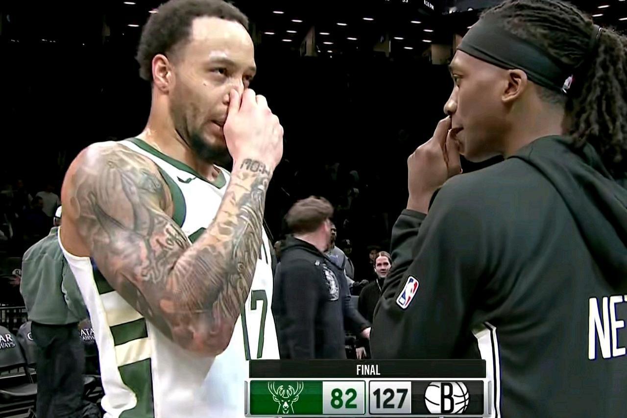 看到这一幕:真的感叹快船旧将科菲和曼恩的命运真的差距太大了…… 篮网换帅后,主场45分屠杀雄鹿,快船旧将曼恩早早的就打卡下班了,然而快船旧将科菲却沦落为板凳席位最末端,雄鹿落后30多分,科菲才有了出场的机会,没想到科菲离开快船会混的这么惨,也是唯一混的最惨的一个了,小波特已经坐稳了雄鹿首发的位置,时不时的狂飙三双的炸裂表现,曼恩也坐稳了篮网首发的位置。唯独科菲沦落为球队最边缘的人物,想想他在快船还有稳定的出场轮换机会,咋到雄鹿成这样了?场均仅仅1.6分,一落千丈了!