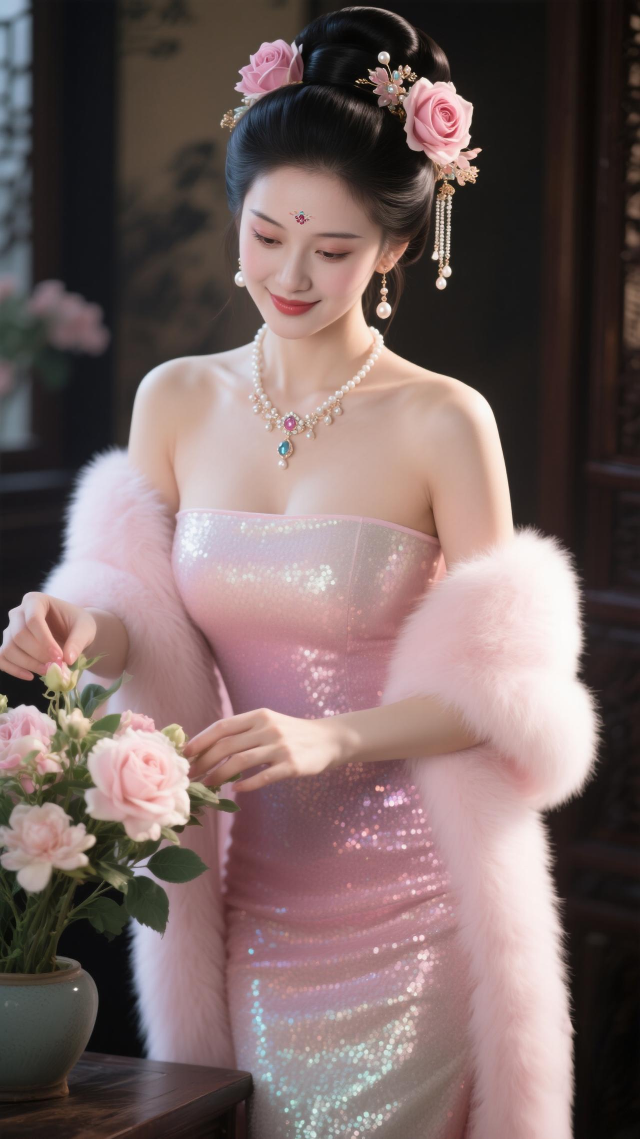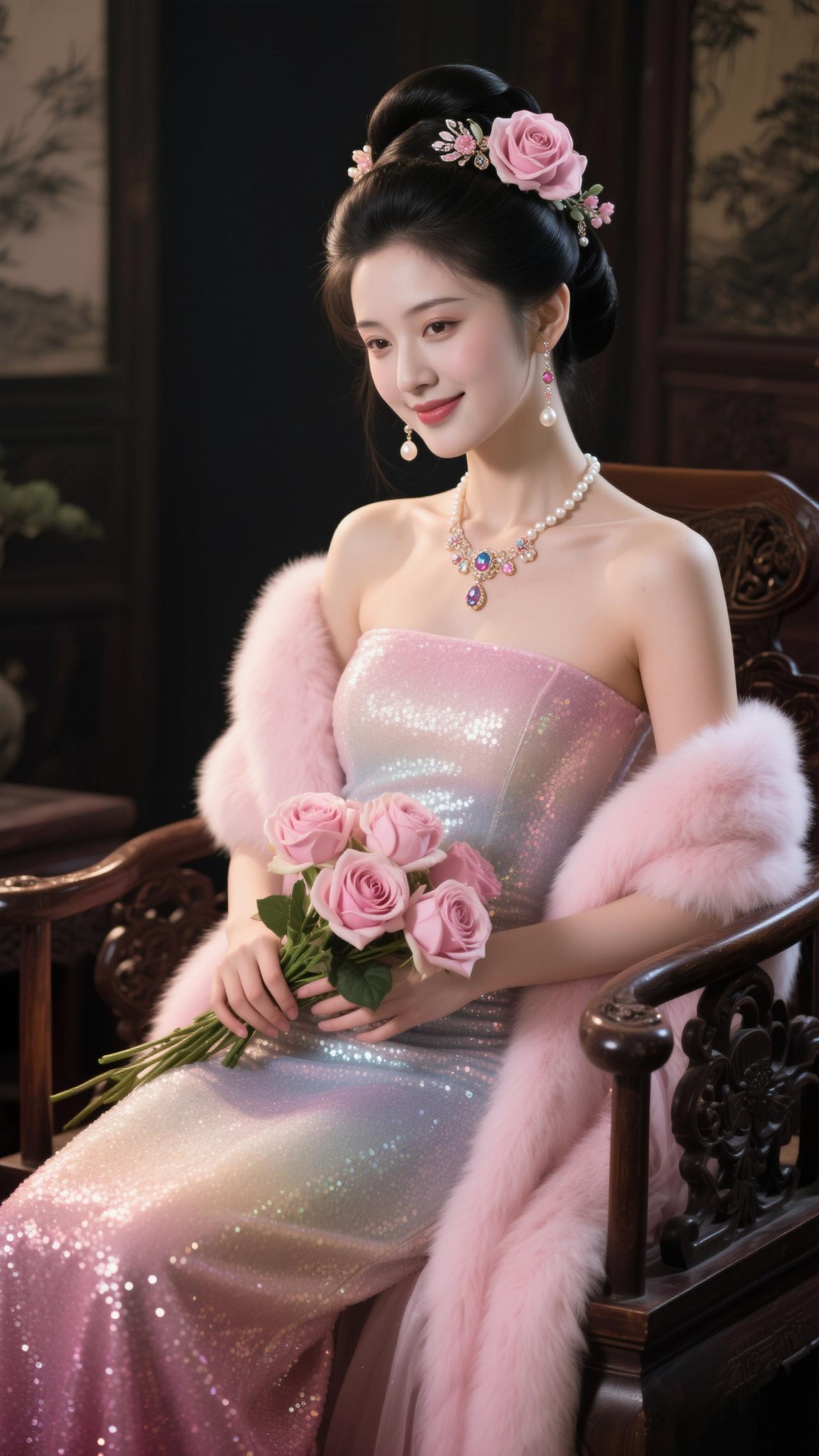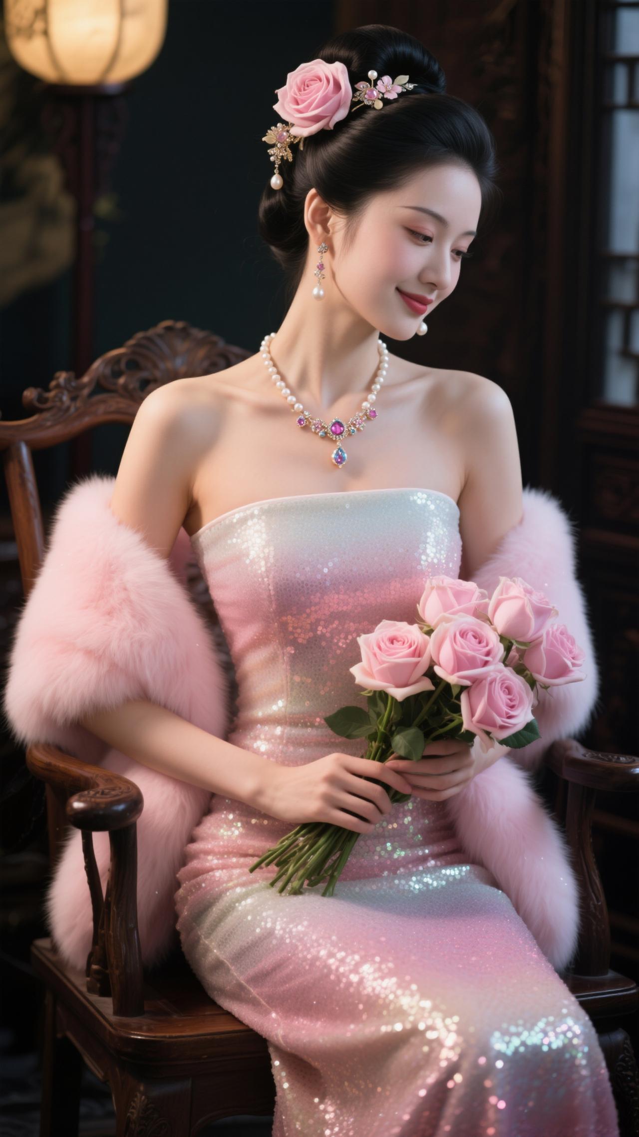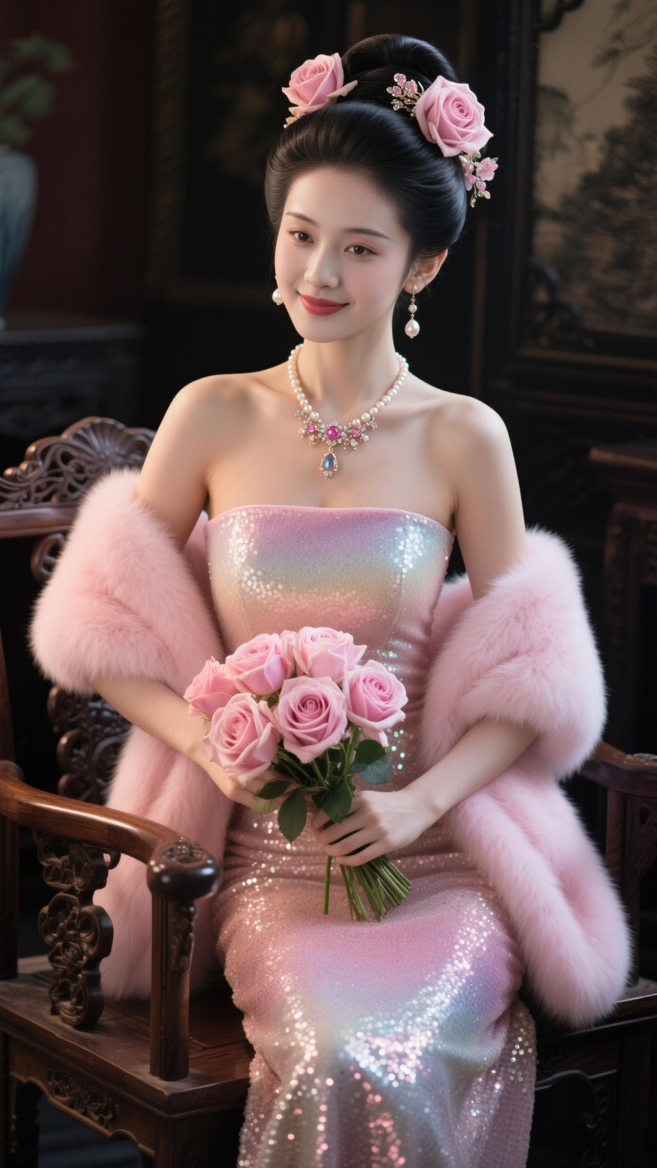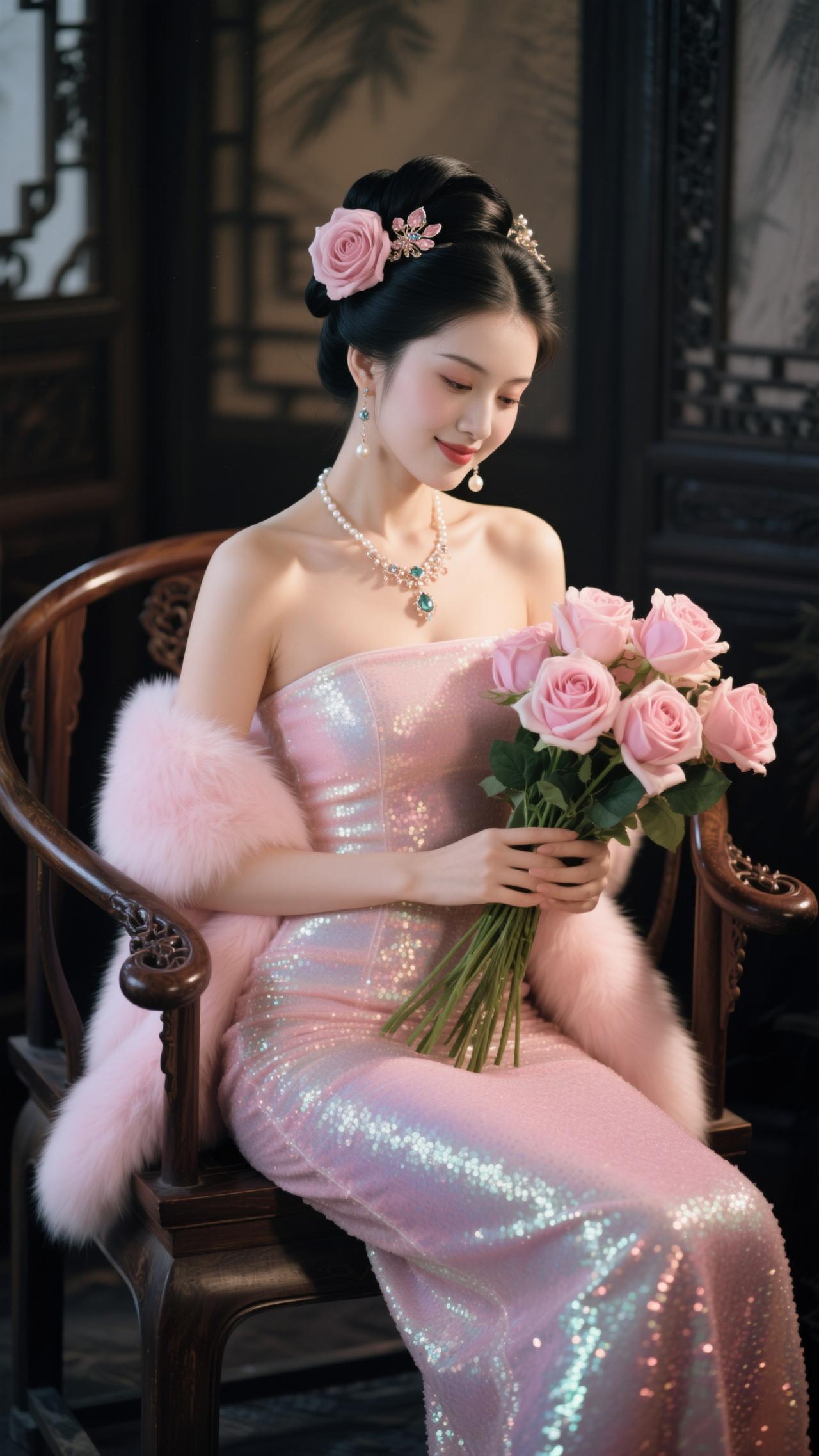 捧花闲倚木椅时,香风萦皓腕,软絮拂蛾眉。优雅气质 国风古韵 好身材好气质 原创作品 清纯甜美 《减字木兰花·玫香粉影》 粉裘凝露,鬓上玫花开几簇。 闪缎流光,漫捻芳枝笑倚窗。 香萦翠袖,半捧春云娇欲语。 闲对花容,一瓣芳心寄晚风。