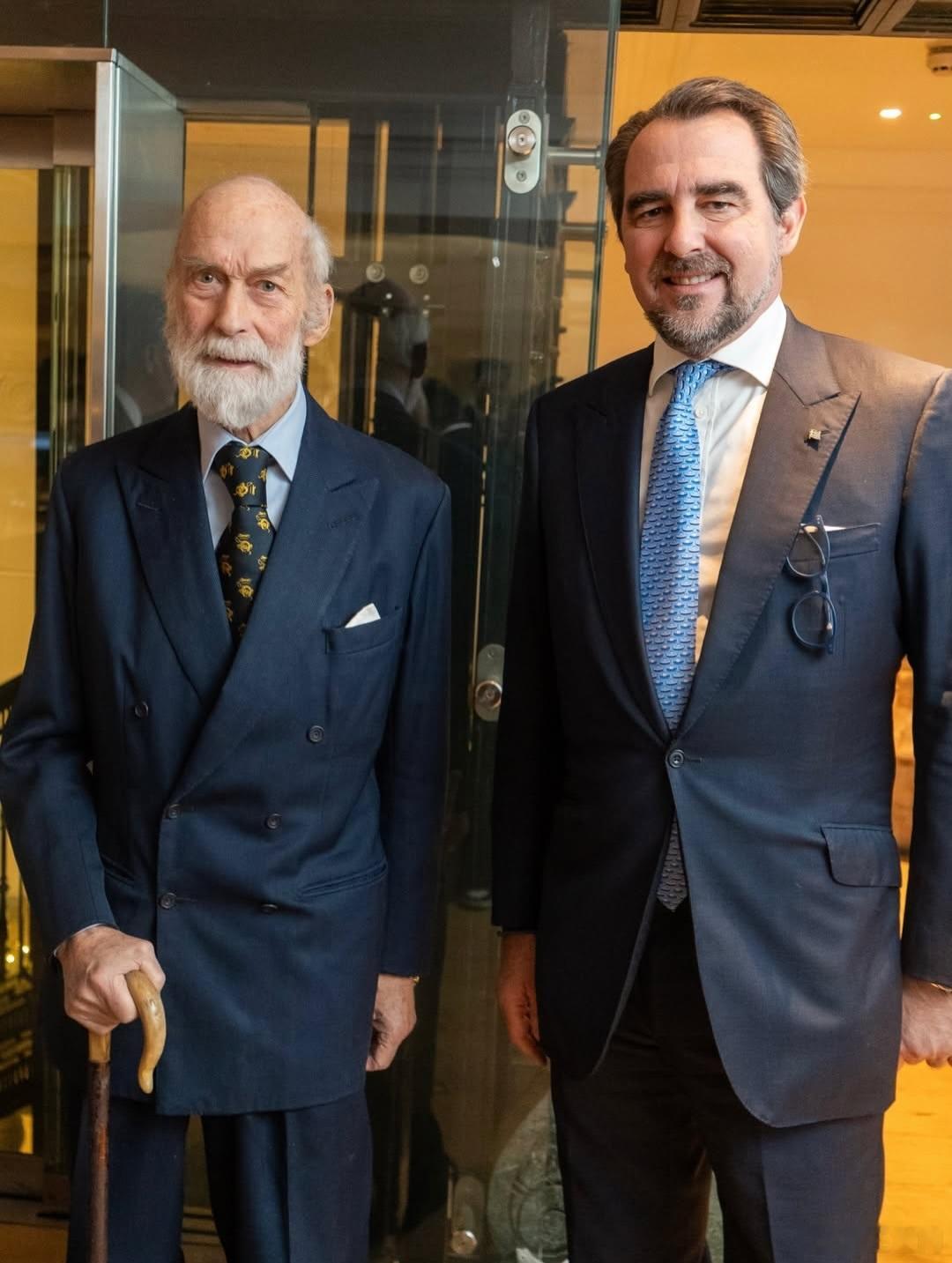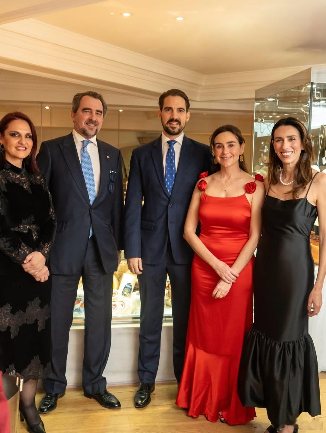 英国王室 🇬🇧希腊王室 12月13日,肯特迈克尔王子和儿子弗雷德里克勋爵、希腊王子尼古拉斯、希腊王子菲利普、希腊王妃妮娜、希腊公主西奥多拉、驸马马修在伦敦的Milos餐厅出席Axion Hellas慈善筹款活动。世界各国王室