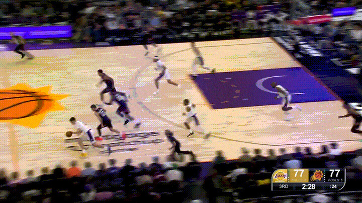 湖人年轻中锋海斯真是太残暴了!在今天湖人客场挑战太阳的比赛中,当时比赛进行到了第三节的两分多钟,海斯在一次快攻反击中接队友拉拉维亚的传球迎着伊戈达罗的防守完成了一记极其残暴的双手暴力隔扣,还造成了对手的犯规,帮助球队反超了比分。 毫不夸张的说,海斯的这记双手暴力隔扣绝对是本场比赛的最佳扣篮。