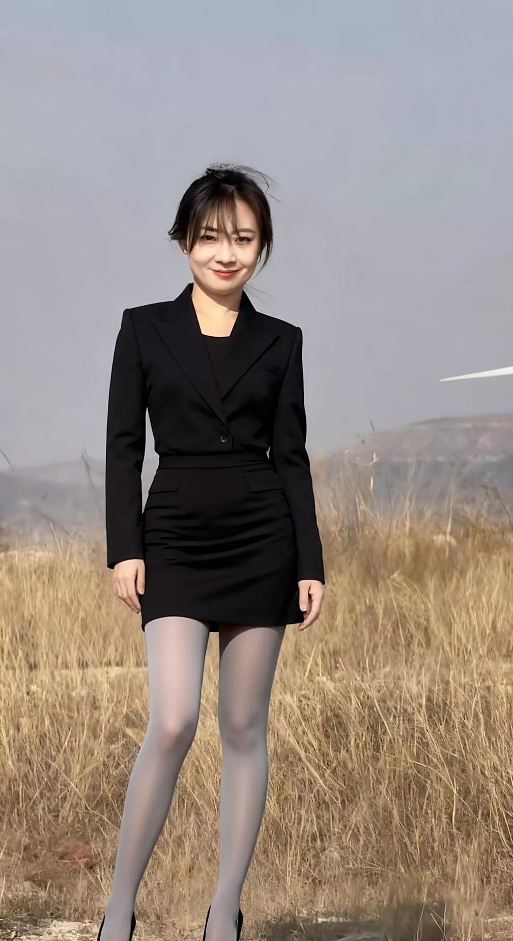 职场女强人穿搭,黑色西装裙搭配丝袜,干练又优雅!