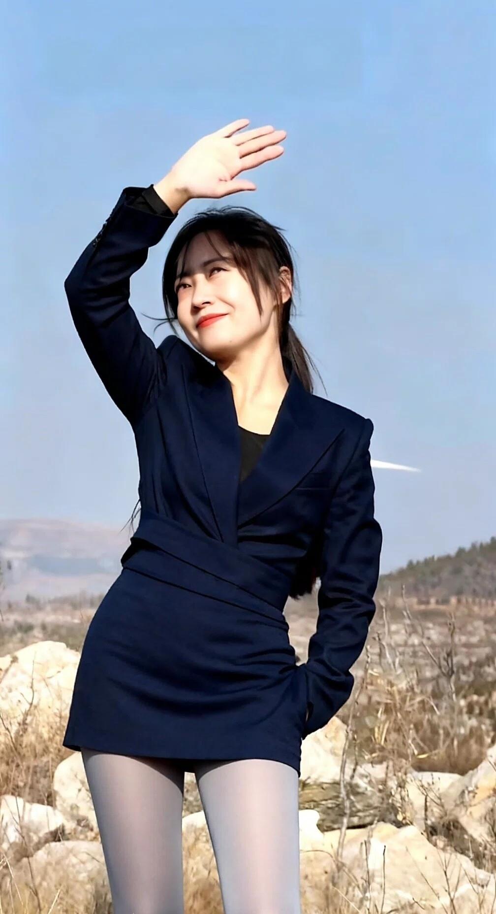 优雅蓝裙,自信挥手,元气满满的一天!🌞💃🏻