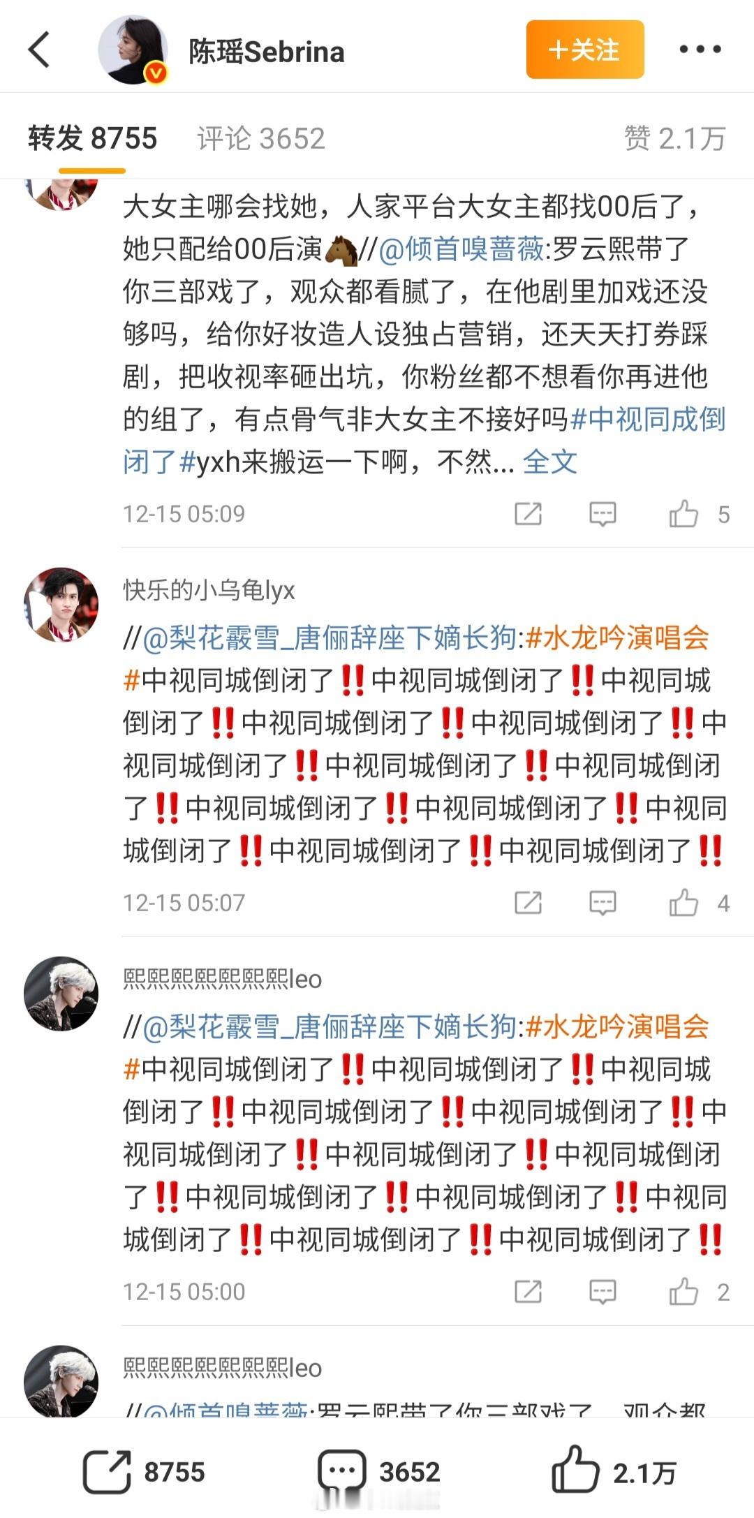 看陈瑶转发区和评论区,我不明白为什么一直逮着她骂呢?跟罗云熙水龙吟不是刚播完吗?