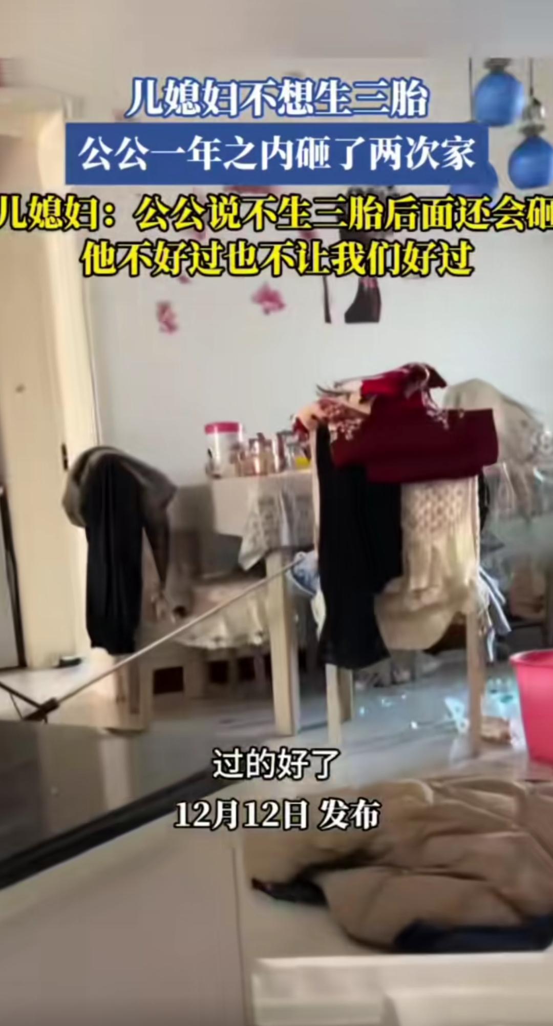看这个公公干了什么事儿? 因为儿媳妇不生三胎,这个公公,砸了两次家,而且啊,这个