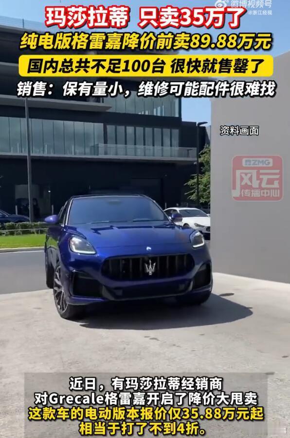 老车主心里恐怕在滴血了,本来豪车的保值率就一般,再加上是纯电,再加上是玛莎拉蒂这种落寞老牌,再再再加上现在降到35万元,第一波65万元购入的那些车主,怕不是车子要烂在手里,车贩子都不敢接。不过,35万元的玛莎拉蒂还真是有人买,难道是觉得已经没有下跌空间了?库存车就这么点,零备件数量估计也很吃紧,万一撞了坏了都没法修。等过两年再看看二手行情,就知道这些人买这车是不是“49年入那啥”了。35万纯电玛莎拉蒂被一抢而空