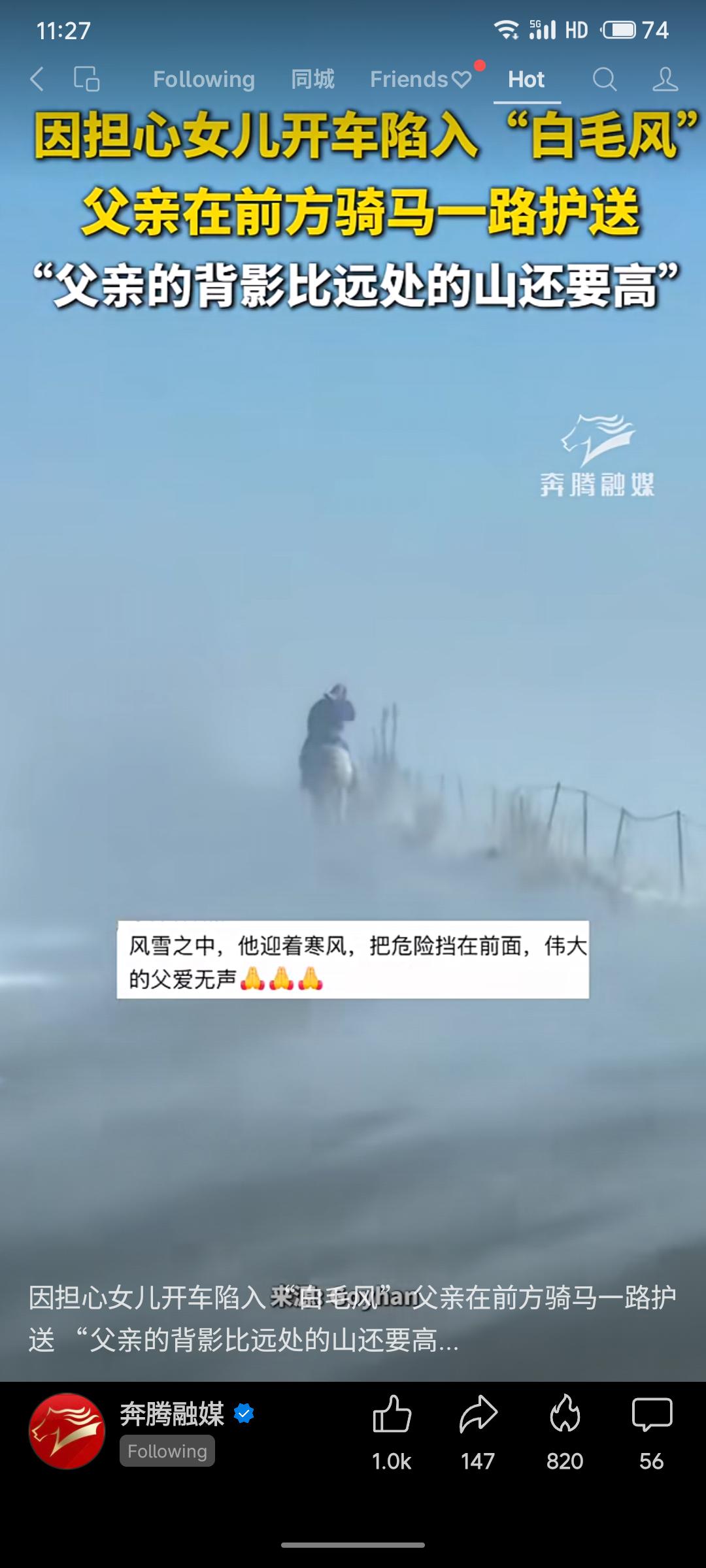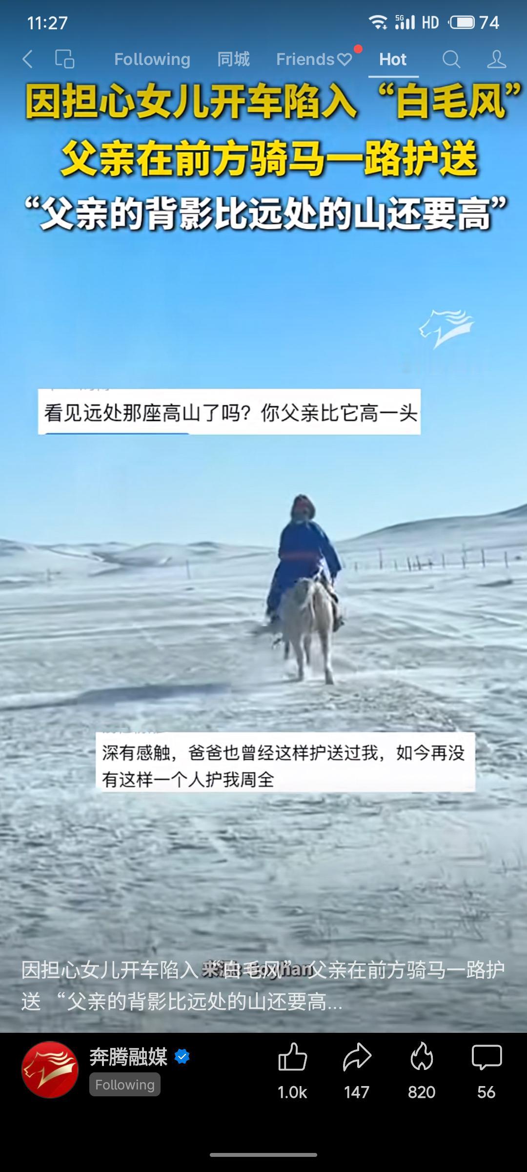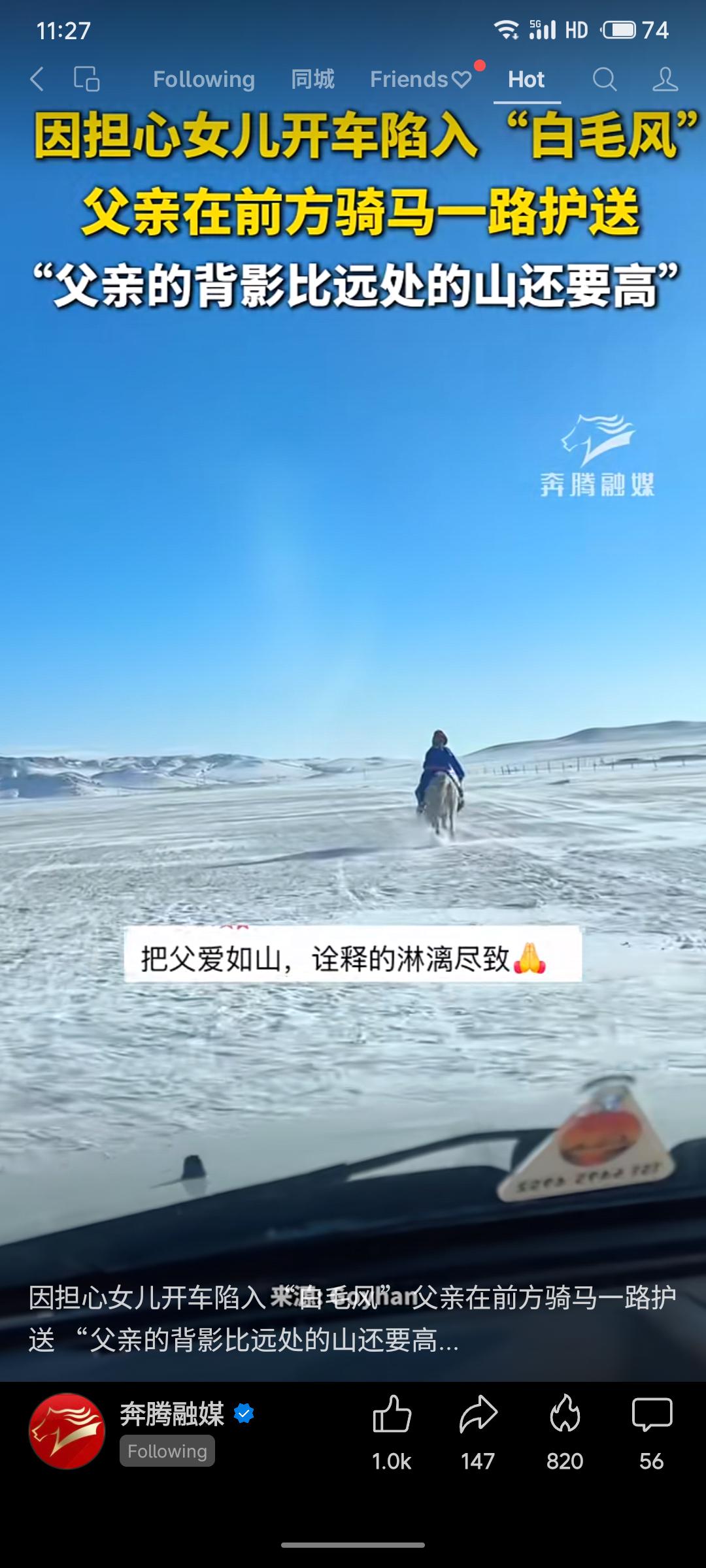 内蒙草原“白毛风”肆虐,父亲担忧女儿行车安全,毅然骑马于前方引路护送。这一身影被喻为“比远山更高”,将深沉父爱具象为风雪中的守护,展现了传统与现代交融下,亲情最本真而有力的表达。