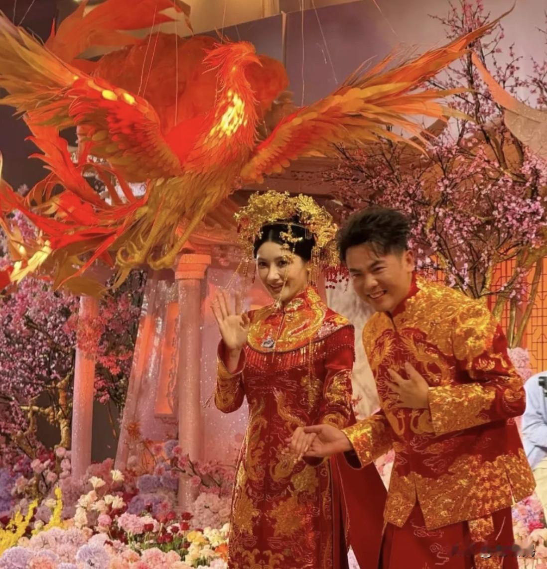 #霸王茶姬# 霸王茶姬创始人张俊杰与天合光能联席董事长高海纯大婚。 12月15日,在常州某酒店,二人举办了中式婚礼,新娘身着“凤冠霞帔”,郎才女貌,天作之合。婚礼现场,奶茶管够。 目前,霸王茶姬的市值约176亿元,天合光能市值395亿元。 张俊杰与高海纯在某次青年企业家学习活动时认识的,你猜谁追的谁?#天合光能#