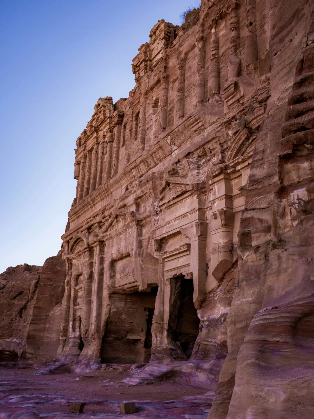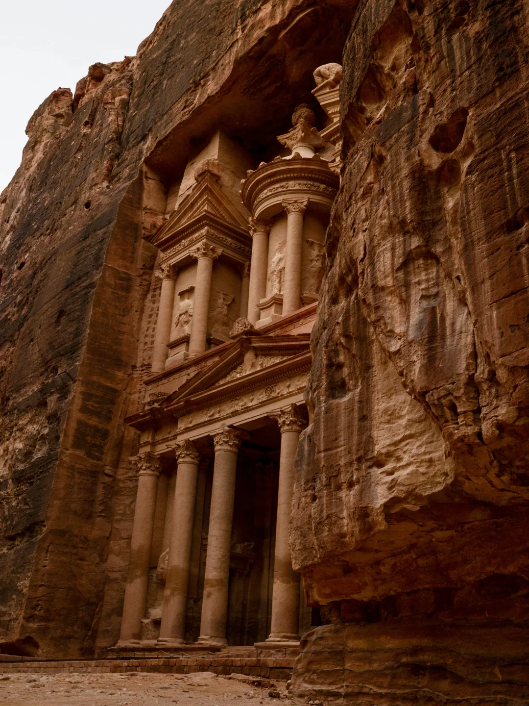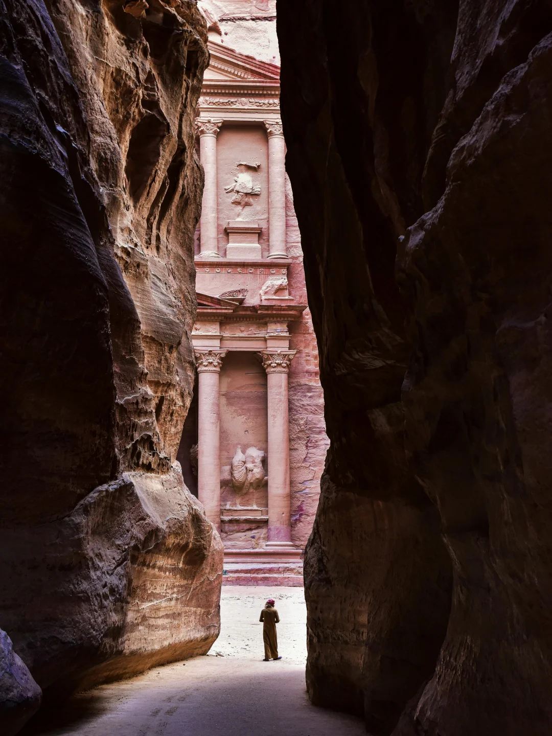 佩特拉(Petra)是约旦最著名、也最震撼的世界文化遗产之一,被称为“玫瑰红色之城”。它始建于公元前4世纪,是纳巴泰王国的首都,整座城市直接雕刻在粉红色砂岩山体之中,颜色会随着日照变化而呈现玫瑰红、橙色和金色。