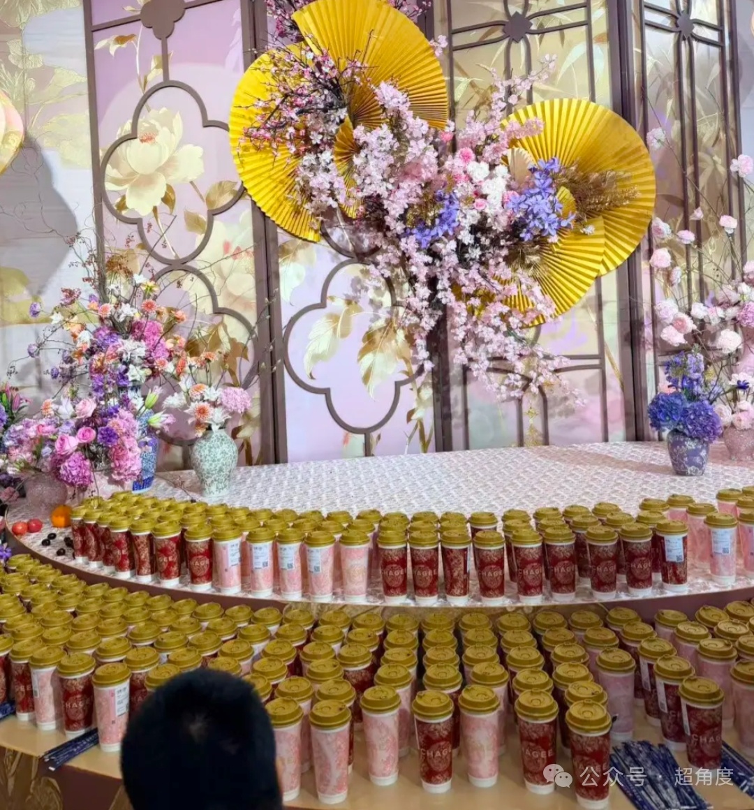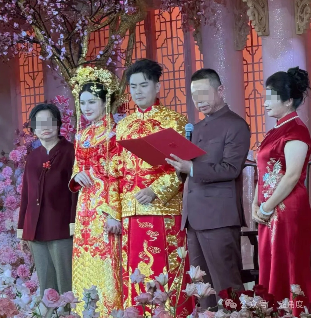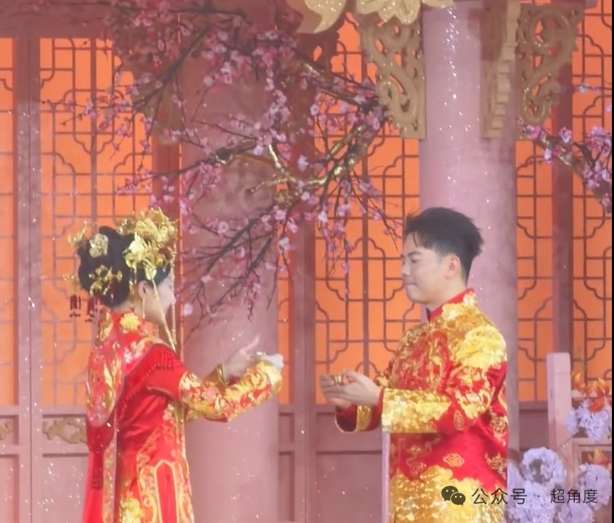 #霸王茶姬# 霸王茶姬创始人张俊杰与天合光能联席董事长高海纯大婚。12月15日,在常州某酒店,二人举办了中式婚礼,新娘身着“凤冠霞帔”,郎才女貌,天作之合。婚礼现场,奶茶管够。目前,霸王茶姬的市值约176亿元,天合光能市值395亿元。张俊杰与高海纯在某次青年企业家学习活动时认识的,你猜谁追的谁?#天合光能#