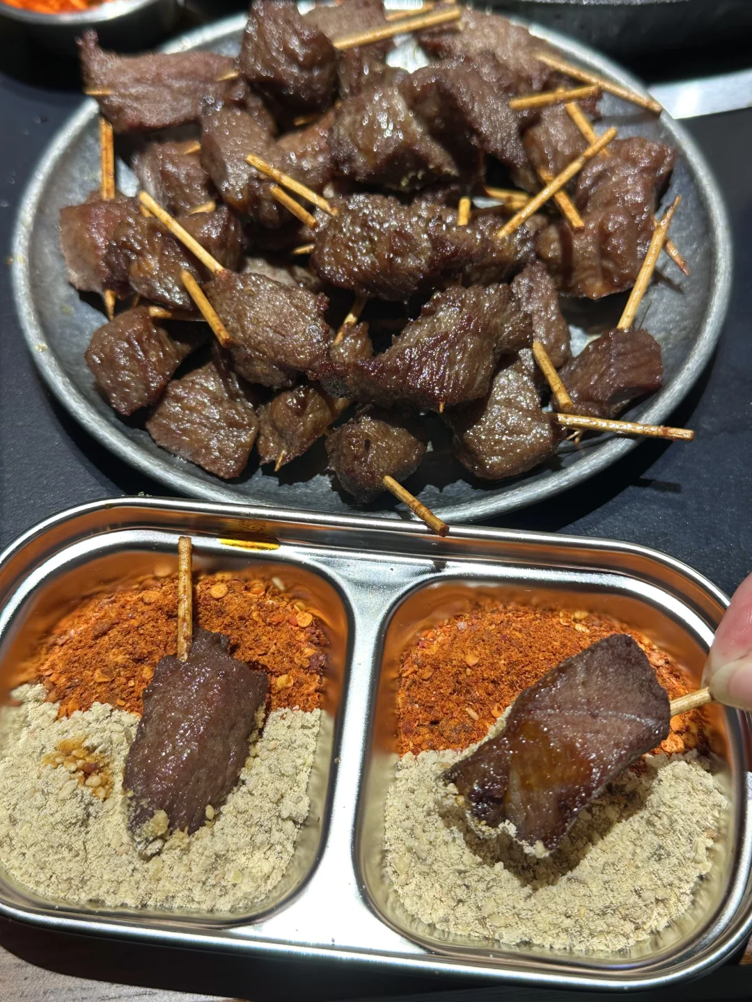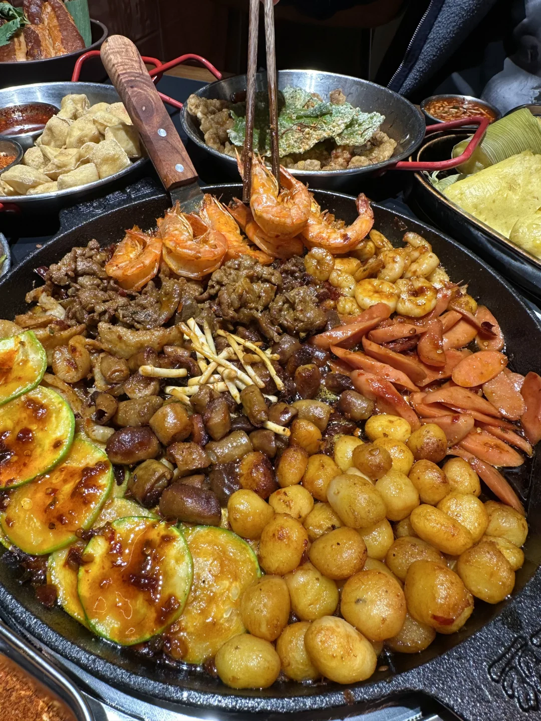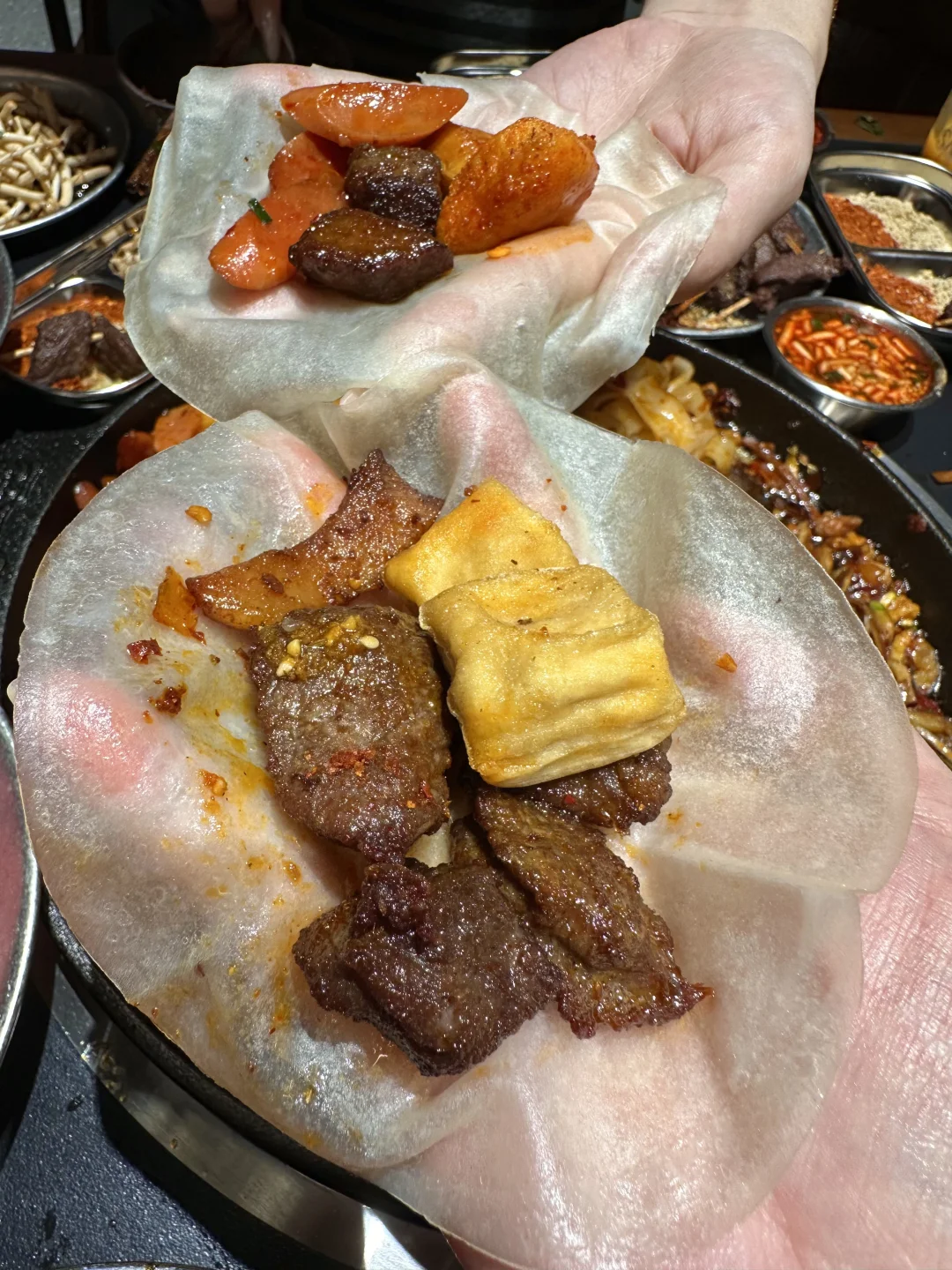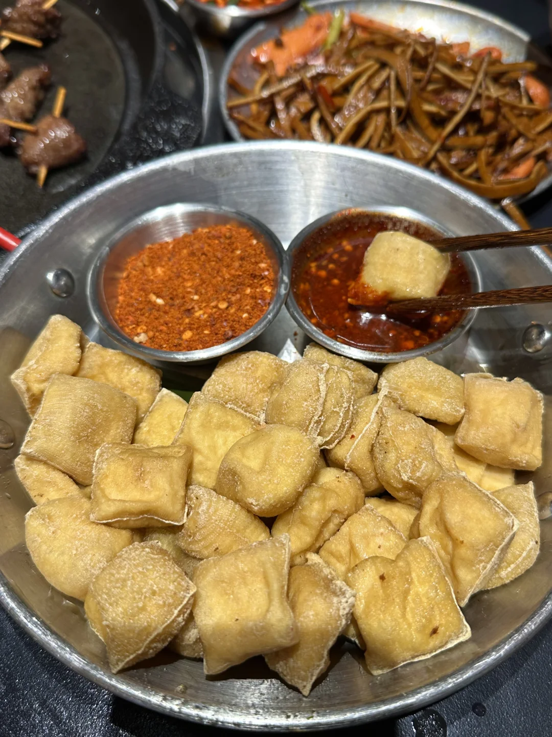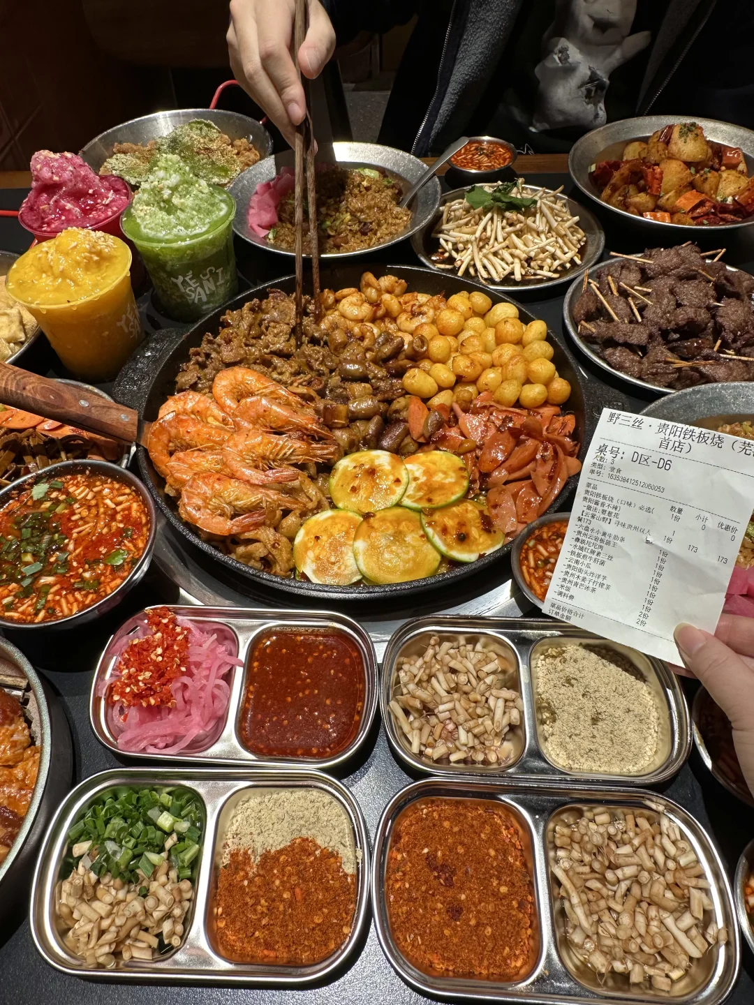 芜湖终于也有咯!就在芜湖大学城旁的弋江万达!人均四五十,馋贵阳铁板烧好久啦!真的啥都可铁板! 荤三丝、嫩牛肉、薄荷牛板腱、小洋芋、坨坨肉、安顺小肠…店员上锅现炒,食材新鲜肉眼可见!炒的滋滋冒油,我能吃两碗大米饭,蘸水很特别!很提鲜! 推荐搭配脆哨炒饭!香! · 水果酸奶泡芙,两种口味,猕猴桃和无花果,奶呼呼的,一口爆浆!用料没话说! 贵州小吃!街头炸土豆、玉米粑粑、牙签牛肉都不错! 糯米冰浆记得喝! 📍野三丝·贵阳铁板烧(芜湖首店) ·