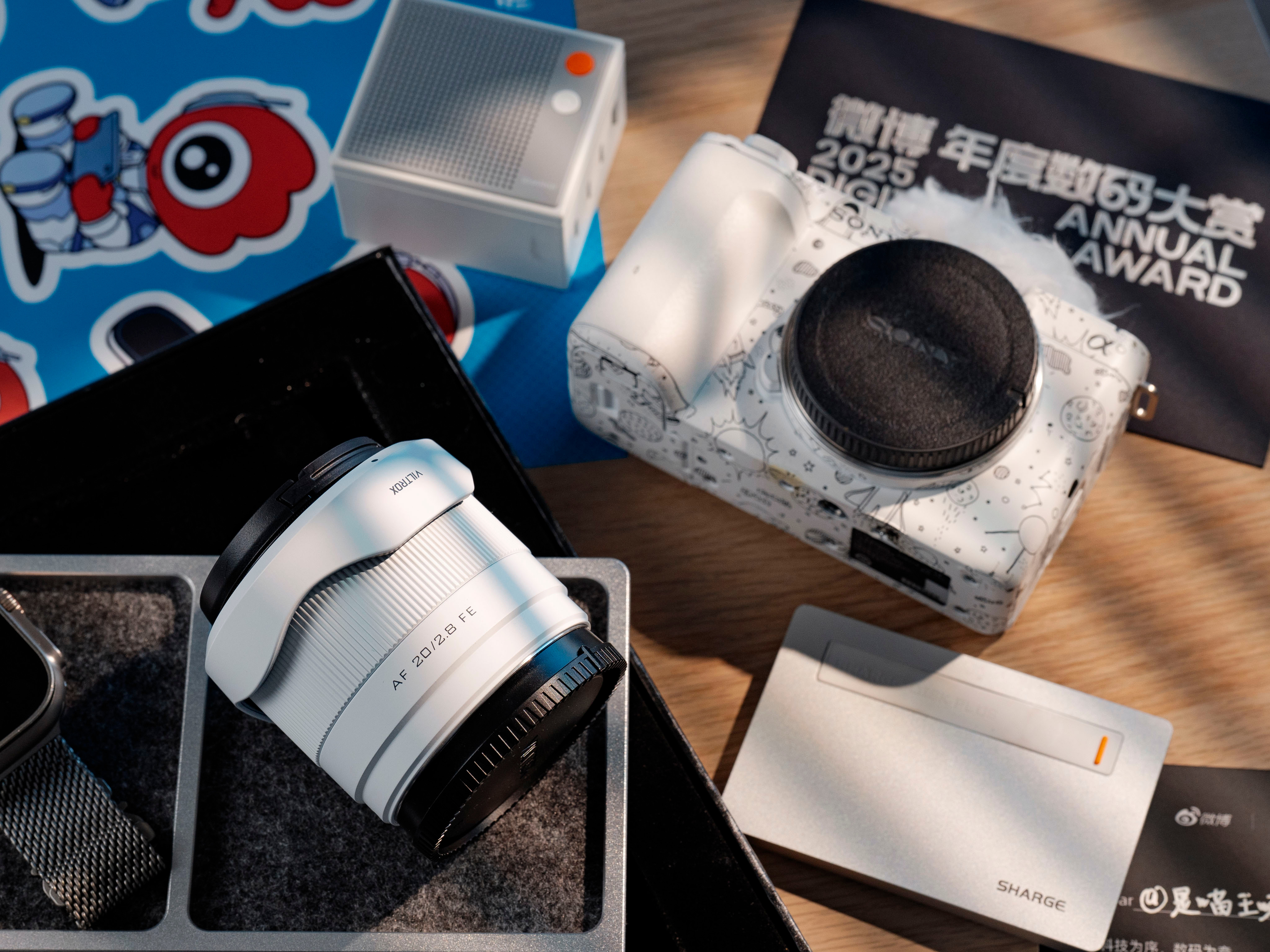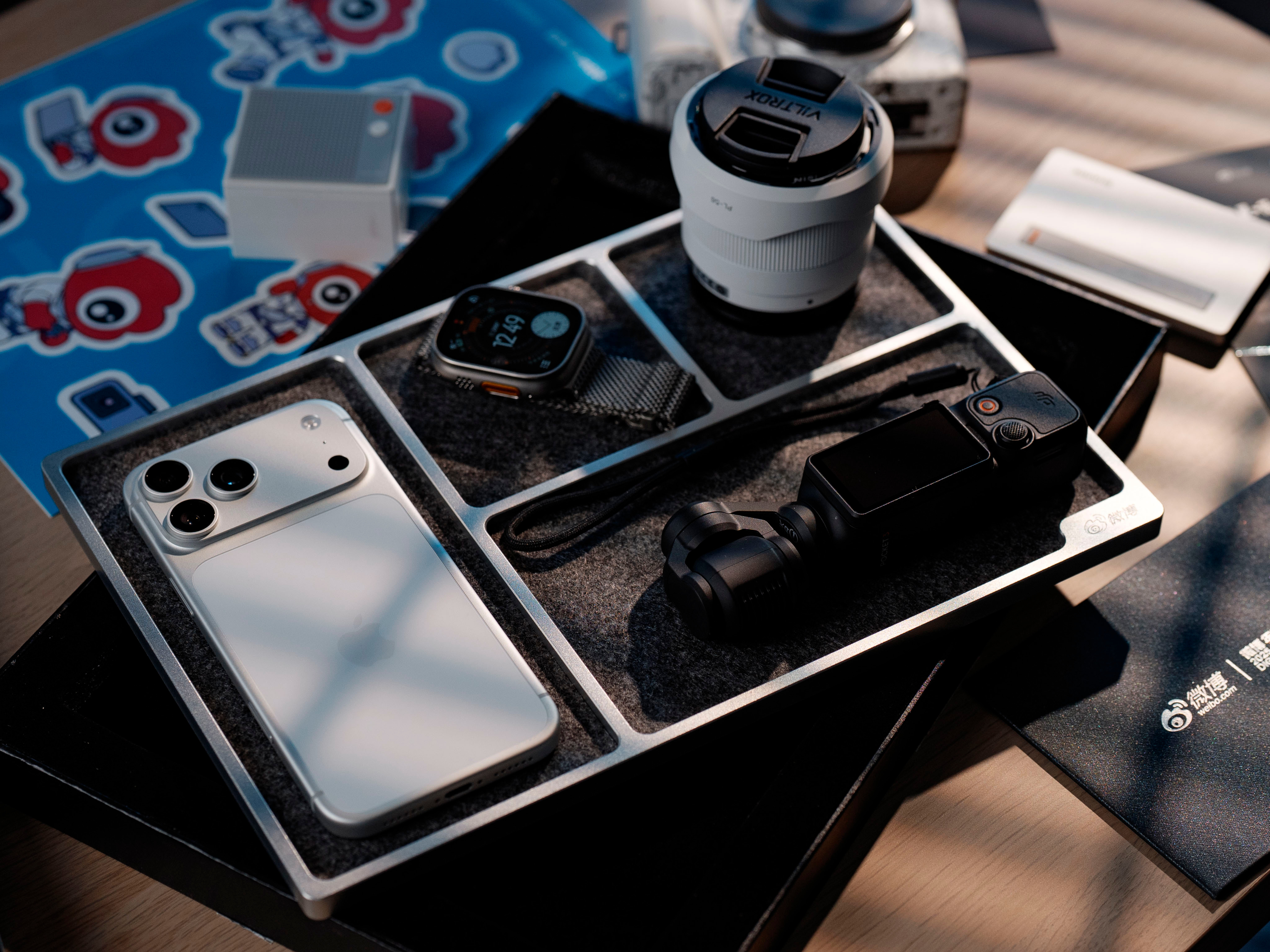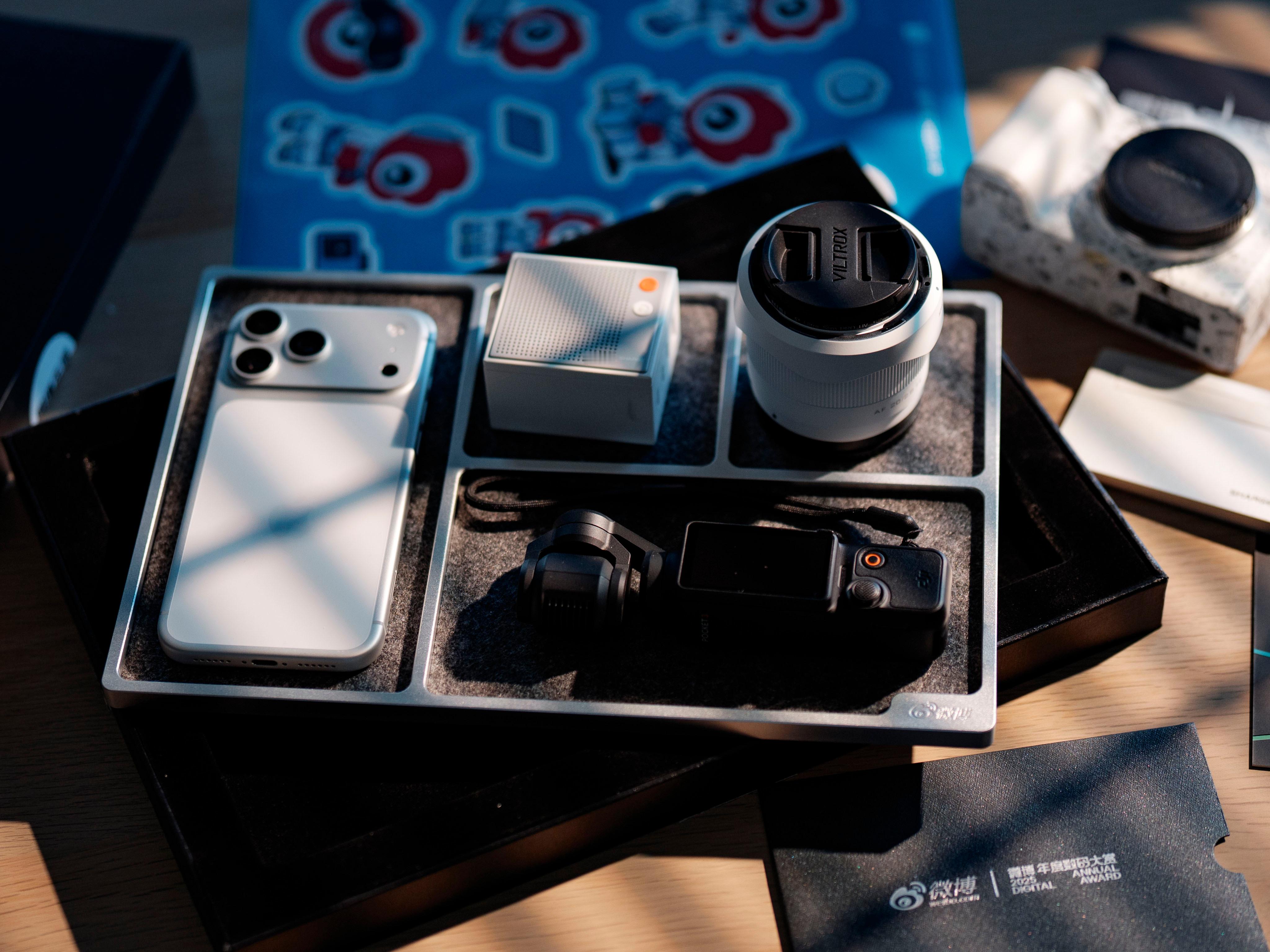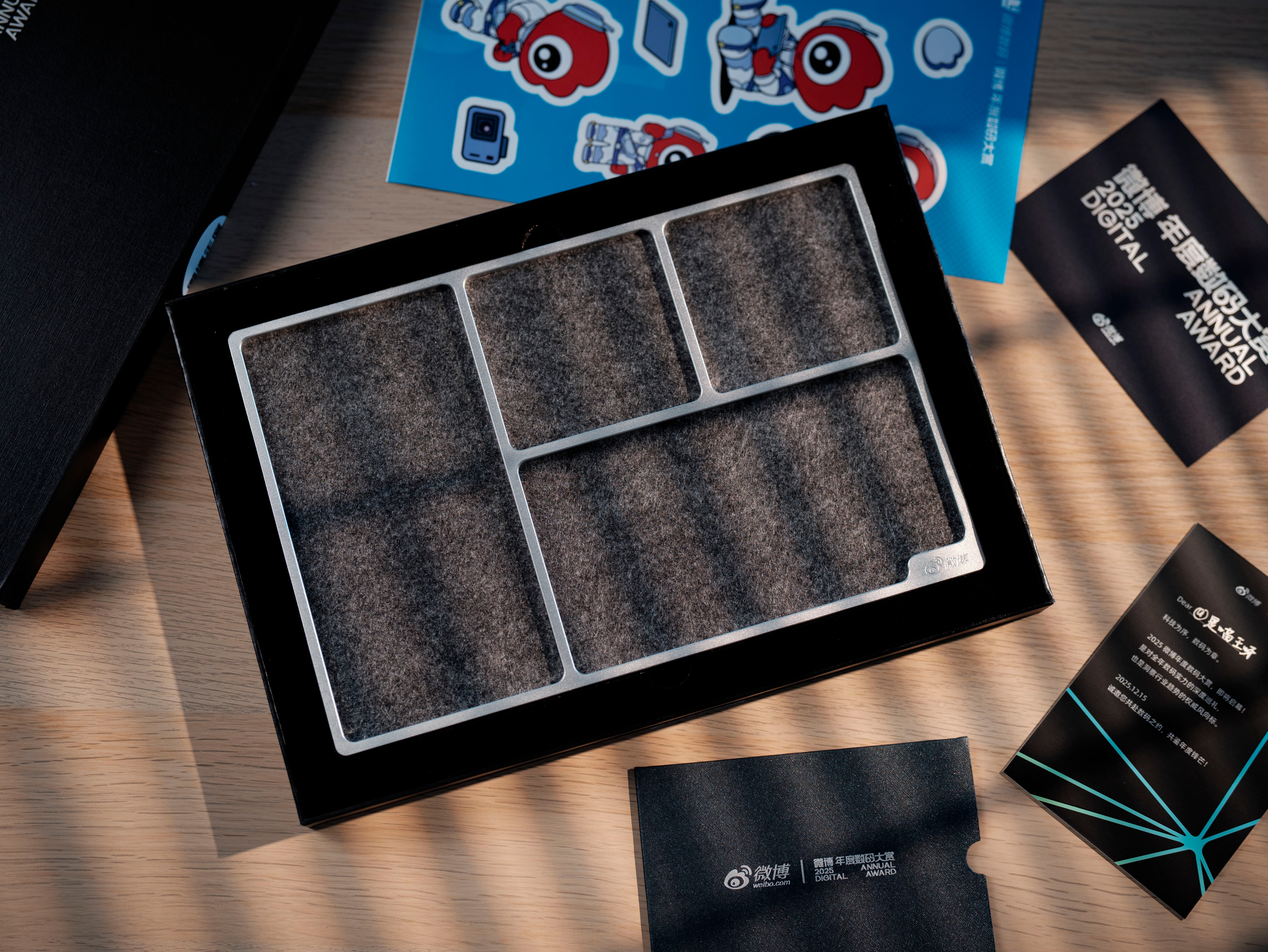 又到一年一度的微博年度数码大赏了,收到了微博数码寄来的邀请函,是一个桌面收纳盘,太懂数码博主的刚需的哈哈,而且据说这次的桌面收纳盘还是还是采用航空级铝合金打造,经CNC一体精雕工艺成型的,质感拉满,微博数码的小伙伴有心了哈哈!拿到手的第一时候,当然是秀今年的“战绩”了,如果让你们在四格里放上最让你们今年满意的产品,你们会放哪几款呢?先来展开说说我的吧①当然是『华为Mate80 Pro Max 』(大家没看到是不是,因为被朋友借走了,所以只能拿iPhone 17 Pro Max顶上),有一说一今年的华为Mate80 Pro Max用下来应该是近几代最让我爱不释手的这次,辨识度很高,质感也非常的强。当然最Q我的地方是今年的影像,第二代红枫和双潜望的组合真的杀疯了,后面还有一起专门针对影像的视频,马上就要做好了,大家可以期待一下哈哈!第②的话,我觉得可以是『港版的iPhone 17 Pro Max』 ,应该是我觉得作为今年备用机的最佳选择,没有之一(注意是备用机哈哈),首先我们工作室的工作流都是在苹果生态,所以我基本自己是离不开一台iPhone 作为备用机了!颜值上,说实话一开始真不觉得有多好看,但是看习惯了,觉得,嗯!也还不错,还挺好看,至少辨识度很高,朋友看到,都会来一句,哟,喵王换手机了啊!这是往年几代都未曾拥有的当初买港版其实为了AI去的,但是真正去用,发现最后受益的是eSIM,真的非常方便,出国旅游,直接激活eSIM,不用落地到处找实体卡手忙脚乱的,至于AI,说实话就那样,这么多手机厂商,感觉应该是我用过AI做的最差的了––––分割线(以上是我认为的今年最佳主力机之一和备用机)③拍摄设备我觉得依然是『大疆的Pocket3』,截止目前快速的记录VLOG,我觉得确实没有能和Pocket3打的,不管是发布会现场,还是景区小姐姐们记录拍照、拍视频,出现概率拥有是最高的。④第二个就是『索尼ZVE1+唯卓仕20 F1.4』的组合,之前也有专门发过一条内容和大家分享过,152g的重量真的非常的轻,关键价格只有一千左右,二手的价格甚至能下探到五六百。能很好的兼顾日常的拍摄和一些简单的工作需求。––––分割线(以上是我认为今年视频拍摄还不错的设备)⑤ 最后一个是一个充电小配件,是闪极的『点阵屏充电器』,颜值是真的高,而且点阵屏还能显示总功率和各个接口的功率,非常有意思的,在充电协议上覆盖了包括PD3.1、3.0/PPS/QC/AFC/SCP 等主流的协议,基本可以说能够满足我们日常的所有需求,出门再也不用带一堆充电器了。 如果把这个桌面收纳盘给你,今年的年度数码宝藏清单你会怎么放呢