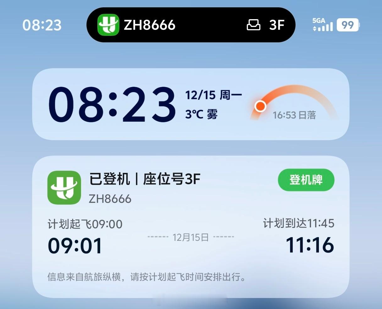 vivo全新系统originos6 大版本更新后的行程助手,航班的显示样式改了已值机、已安检、已登机、飞行中和落地行李转盘号的显示如下,原子通知的小部件倒是挺好看的目前iOS上的策略是:没有托运则行李转盘不上岛,安卓这边参考一下