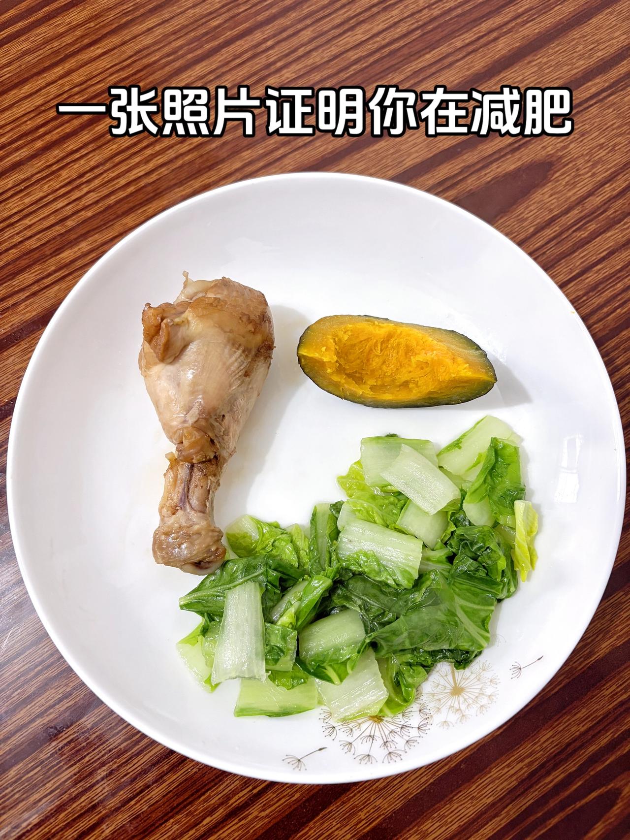 一张照片证明你在减肥 今日减脂晚餐:鸡腿+南瓜+素炒青菜