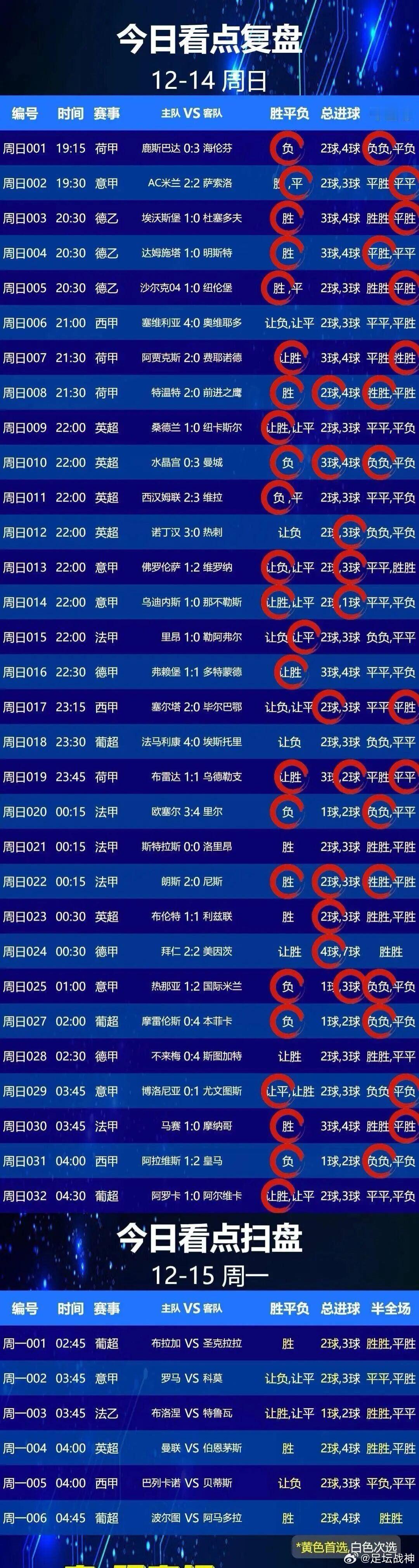 12月15日001 布拉加 VS 圣克拉拉002 罗马 VS 科莫1907003 保洛尼 VS 特鲁瓦