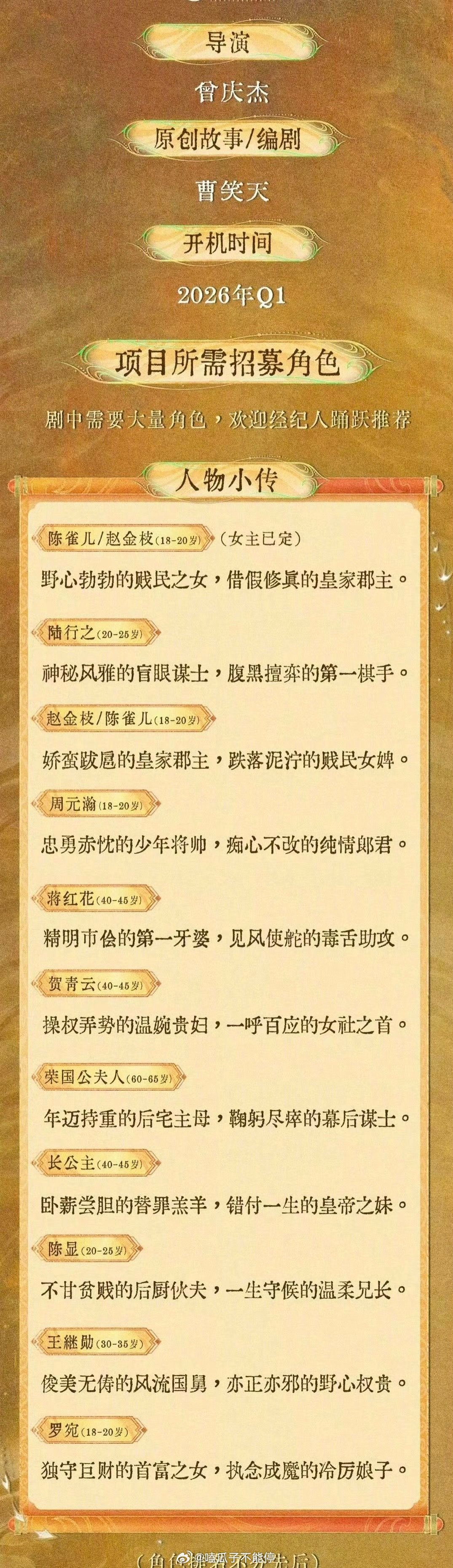 🍉古偶《金枝》主演:李一桐、陈星旭,两人平番2026年一月底横店开机,你们期待吗?