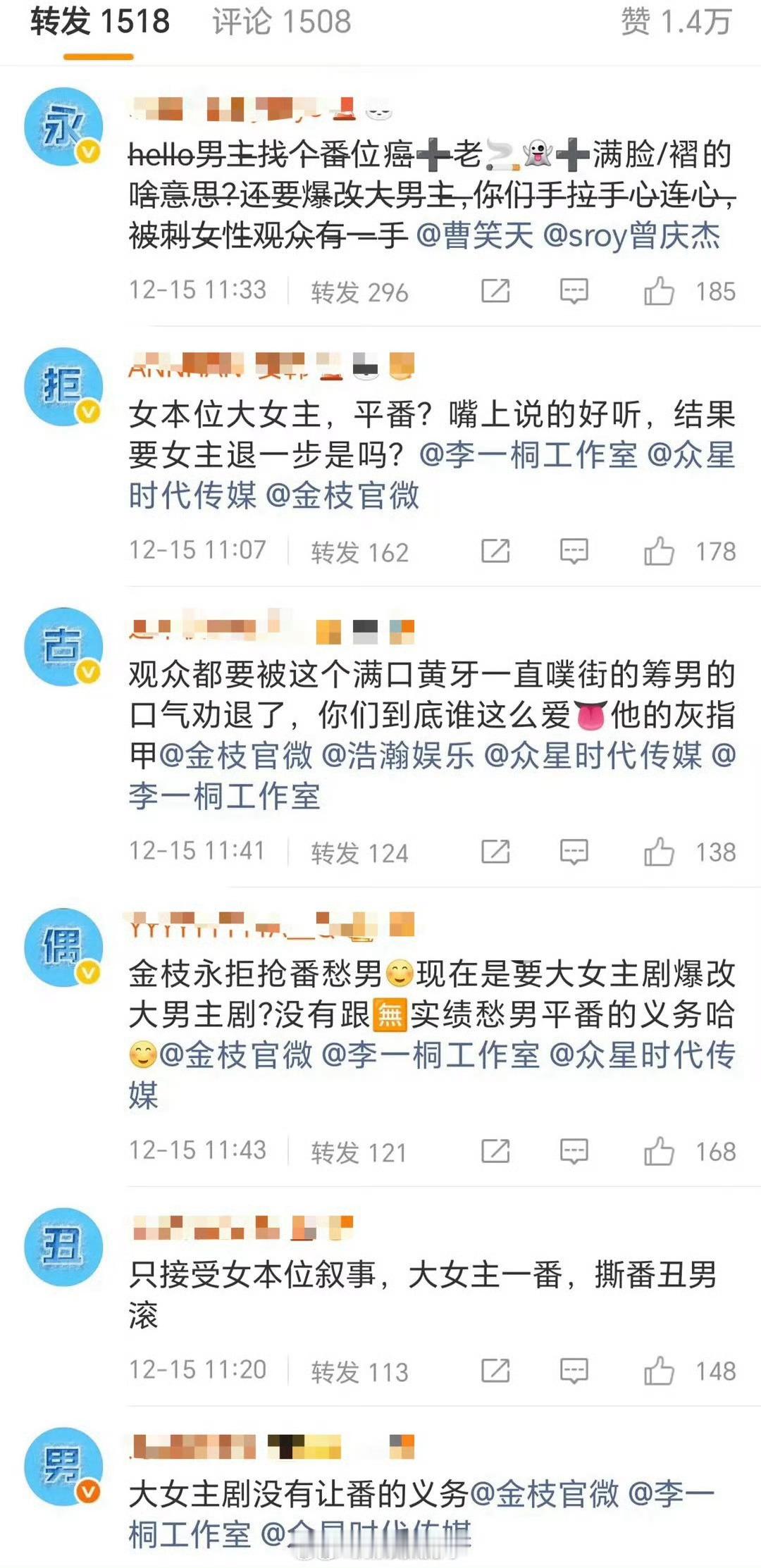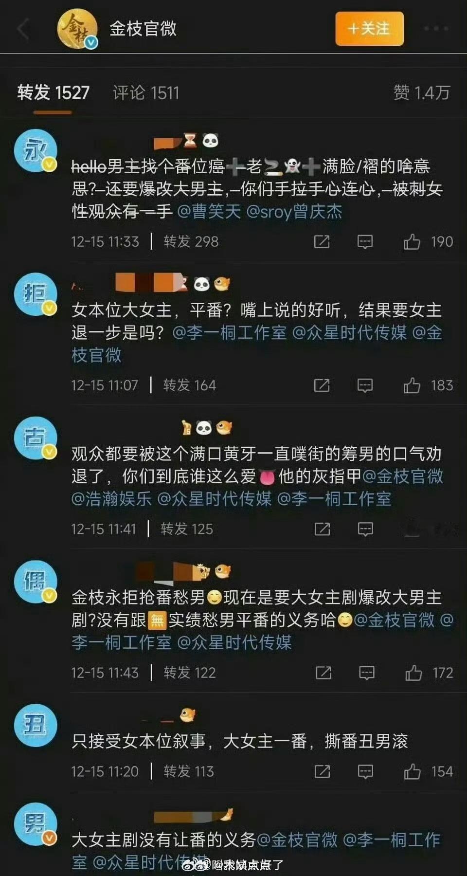 李一桐粉丝在金枝官博热转维权,强调要求女主一番!九日也是混到了被打成古偶丑男永拒的地步了。。。
