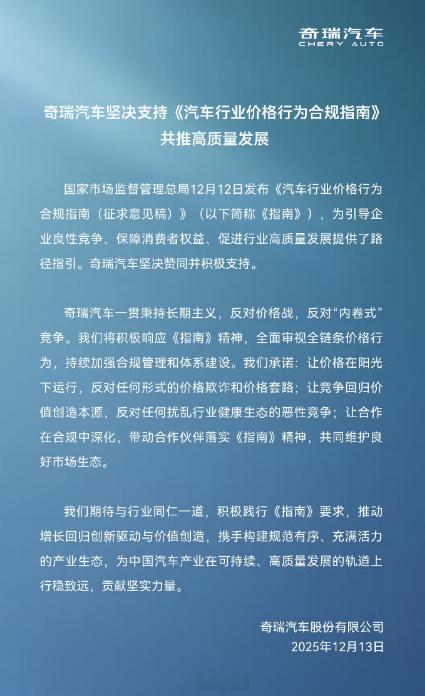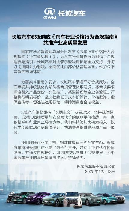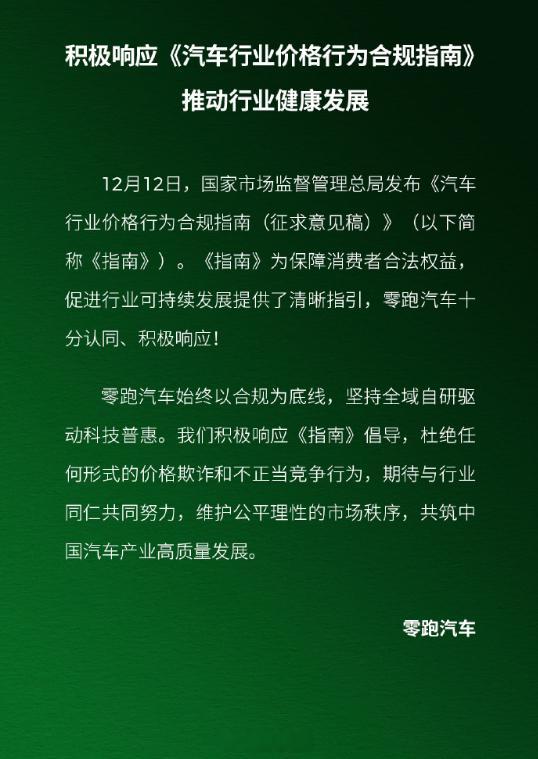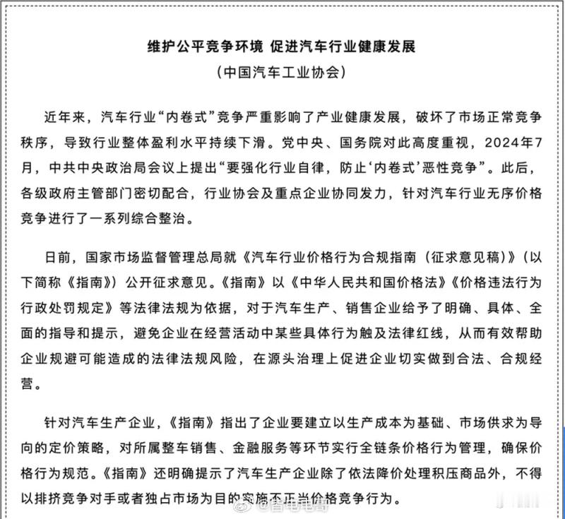 最近多家车企都开始发文响应“反对价格战”零跑、小鹏、比亚迪、长安、奇瑞、北汽、长城等多家车企都回应并且发文支持。汽车行业合规国家发文禁止亏本卖车
