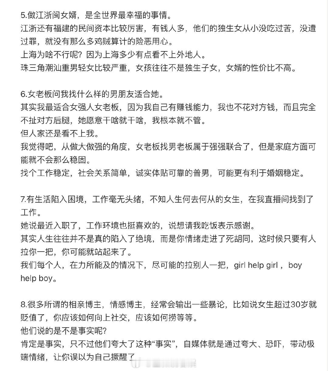留几手说男人忘不掉白月光是借口留几手说做江浙闽女婿是最幸福的 晒出直播连麦总结,提到 “男人忘不掉白月光是立深情人设的借口”,称 “做江浙闽女婿最幸福”,还建议家境普通者别去澳英加留学。