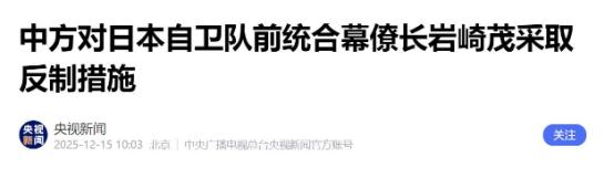 忍了38天后,中国对日本发出第一道制裁令!暗示了高市早苗结局?   再也不惯着了!忍了整整38天,中国终于对日本发出第一道明确的制裁令。这记“重拳”砸向了日本自卫队前统合幕僚长岩崎茂,更像一面镜子,照出了日本政坛某些人危险的前路——比如正被推上风口浪尖的高市早苗。   12月15日,外交部的公告说得明明白白,岩崎茂因为公然跟“台独”势力勾连,严重违反一个中国原则,被直接贴上“制裁标签”:在中国大陆的财产全冻结,这辈子别想踏入中国境内一步,国内任何组织和个人都不能跟他有半点合作。   消息一出,熟悉内情的人都觉得,这哪是突然出手,分明是岩崎茂自己“求锤得锤”,日本政府纵容之下,这一天早该来了。这事得从今年3月说起。   当时岩崎茂顶着“日本自卫队前最高军事指挥官”的头衔,压根不管大陆的明确反对,硬要去当台当局所谓“行政部门”的政务顾问。   这可不是普通的民间往来,要知道,日本在1972年《中日联合声明》里就白纸黑字承诺过,尊重台湾是中国领土的一部分,只跟台湾保持民间和地区性往来。一个前军方高官跑去给台当局站台,这是明晃晃地撕毁承诺,开了个极其危险的先例。   中方当时就没客气,第一时间就向日方提出严正交涉,把底线摆得清清楚楚。可岩崎茂根本不当回事,日本政府更是装聋作哑,一副“默许纵容”的态度。   这种“错了还不认”的嚣张,彻底把事情闹到了无法挽回的地步。现在中方依据《反外国制裁法》出手,说白了就是“秋后算账”,而且算得明明白白,让所有人都知道:触碰台湾问题这条红线,代价必然惨重。   可能有人会问,一个“前高官”值得中国专门下制裁令?答案就藏在外交部发言人郭嘉昆的话里:台湾问题是中国核心利益中的核心,是不可逾越的红线。   从法理上讲,《开罗宣言》《波茨坦公告》早就把台湾归还中国的事定死了,日本当年签字投降就是认了这个理的;1978年《中日和平友好条约》又重申了这些原则,这可是具有法律约束力的承诺。   岩崎茂的所作所为,不仅是干涉中国内政,更是在挑战战后国际秩序的底线。岩崎茂不是孤例,他背后是日本政坛越来越明显的“踩线”歪风。   高市早苗上台后,这股风刮得更猛了——一会儿喊“台湾有事可能是日本存亡危机”,一会儿又含糊其辞回避“一个中国”原则,甚至推动提前实现防卫费占GDP 2%的目标,在西南诸岛部署导弹。   她这套说辞,跟岩崎茂的挑衅本质上是一路货色,都是想把台湾当成牵制中国的“棋子”。可高市早苗似乎没看清现实。岩崎茂被制裁的消息传来时,日本国内已经炸了锅。   高市早苗的错误言论让日本经济蒙受损失,必须撤回言论并负责;数百名民众在首相官邸前抗议,举着“高市早苗是国难”的标语喊她下台。连日本前首相鸠山由纪夫都站出来提醒,不尊重一个中国原则,所谓“台湾有事”只会是自找的麻烦。   这次制裁岩崎茂,其实就是给高市早苗们提了个醒:别以为模糊立场、勾结“台独”能蒙混过关。岩崎茂只是“前高官”就落得这般下场,作为现任首相的高市早苗,如果继续在台湾问题上玩火,结局只会更难看。   日本学界早就点破了,她那些违背《中日联合声明》的言论,本质上是在破坏中日关系的根基,甚至可能把日本拖进地区对抗的漩涡里。中国从来都不想跟日本闹僵,但底线面前没有商量的余地。   从3月交涉到12月制裁,这38天的“容忍期”,是给日方纠正错误的机会,可惜他们没抓住。现在岩崎茂成了“反面典型”,剩下的就看高市早苗怎么选了——是赶紧收起那些危险言论,回到遵守一个中国原则的正轨上,还是跟着岩崎茂的老路走下去。   要知道,中日关系的基石从来都是“一个中国”原则,这不是用来讨价还价的筹码。岩崎茂的制裁令已经生效,这记“警钟”,日本政坛该听进去了。