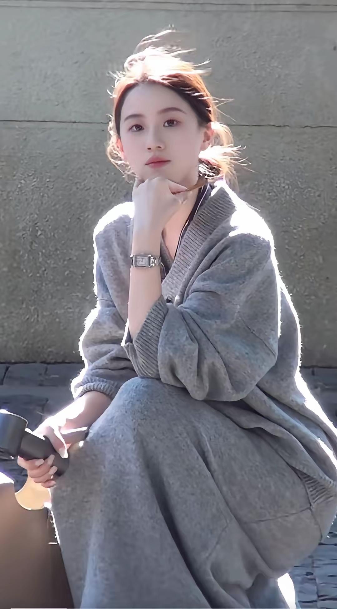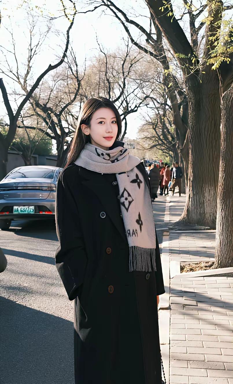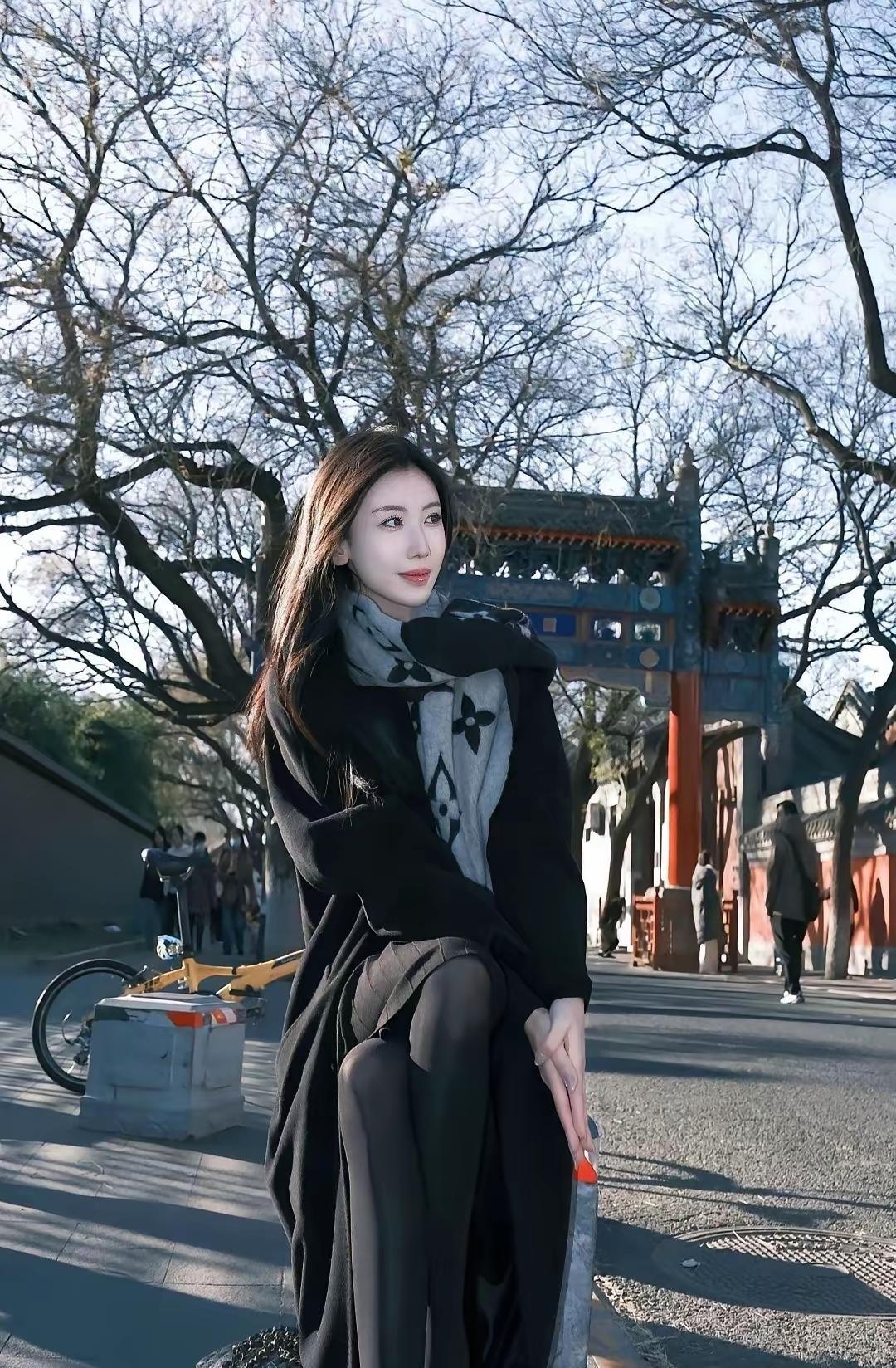 黑衣少女在镜中自拍的瞬间,时尚又自信!