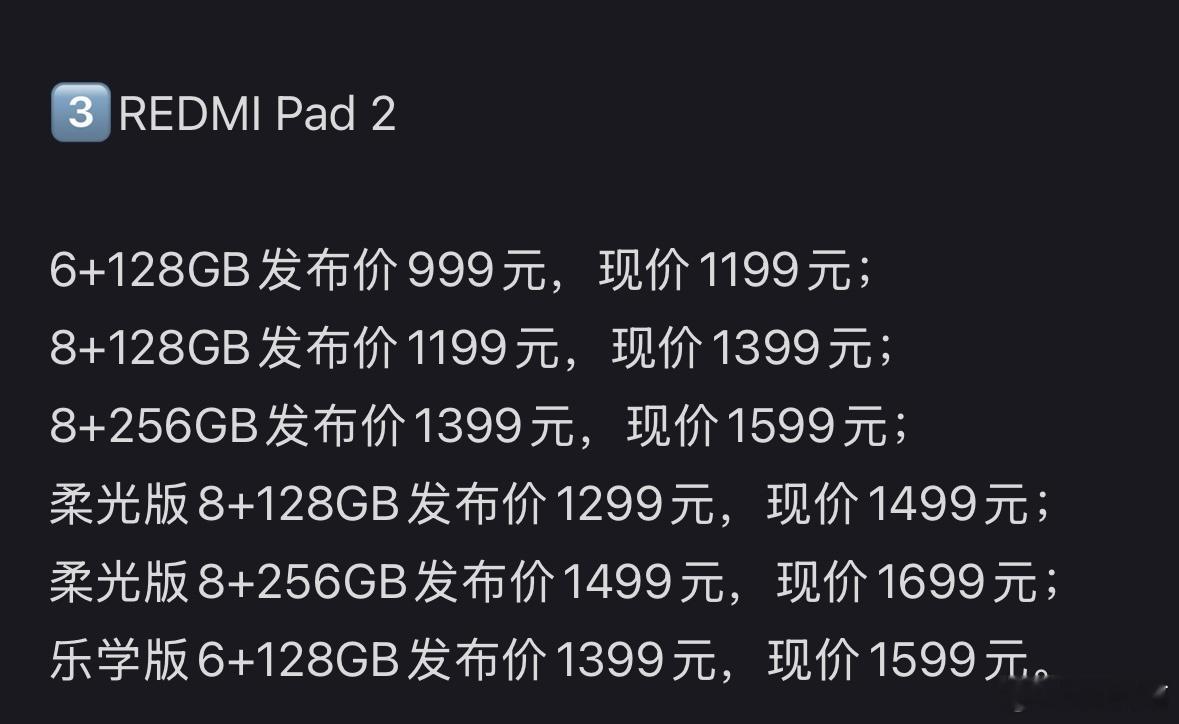 小米平板8系列涨价100-200元REDMI Pad2涨价200元内存涨价幅度超出想象,早买早享受了~