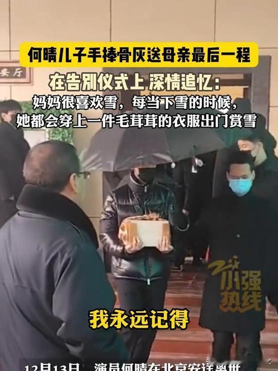 何晴追悼会现场最揪心的一幕,是她24岁的儿子捧着母亲的骨灰和遗像走在最前面。曾经他最骄傲的事,就是拥有一个美丽的妈妈,如今失去了,看到他泪流满面的样子,让人心疼。一个24岁的孩子,今后要独自面对生活,实在令人心疼。作为母亲,看着这一幕,也忍不住流泪。此情此景,何晴在天上也要保佑她的孩子。