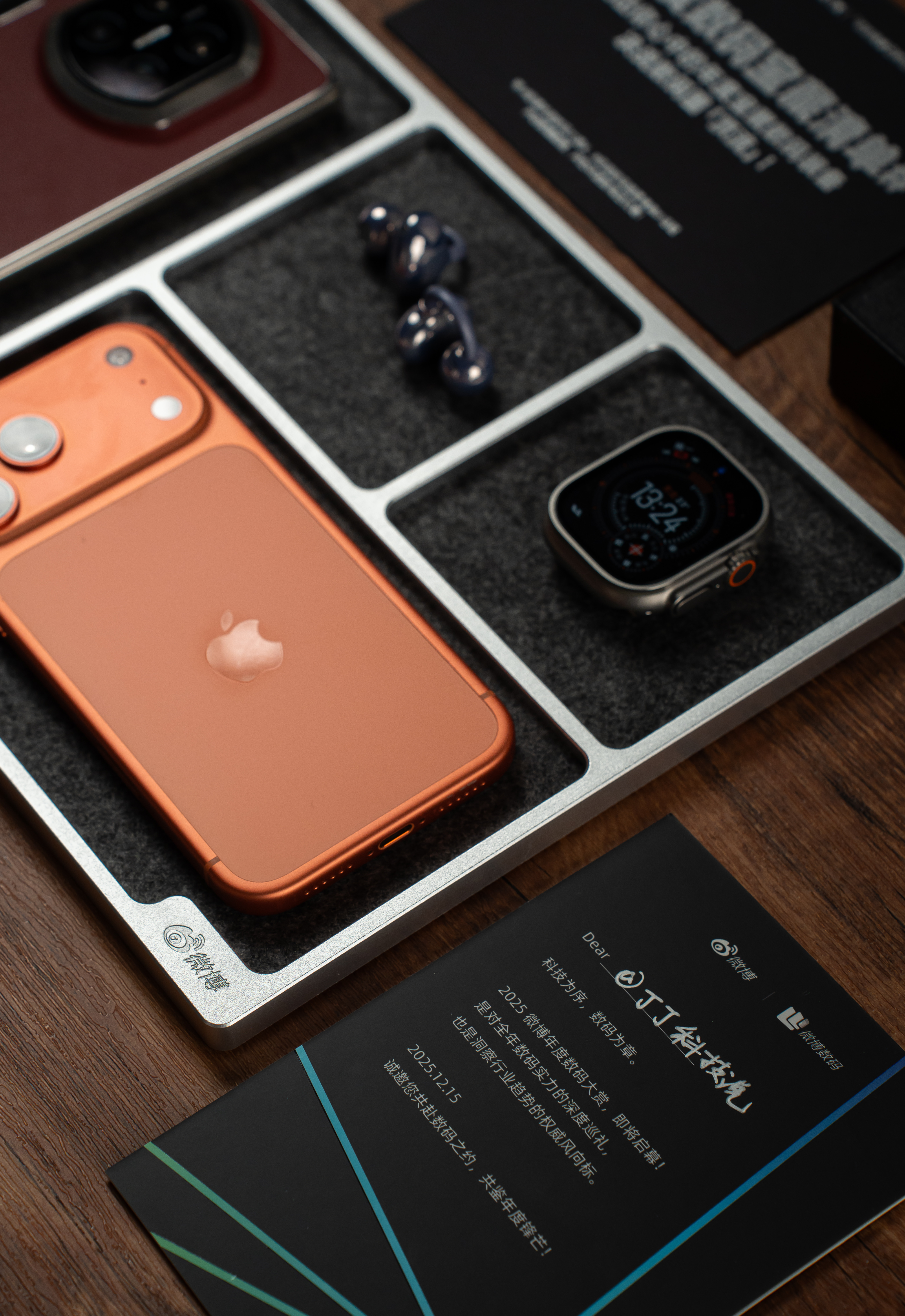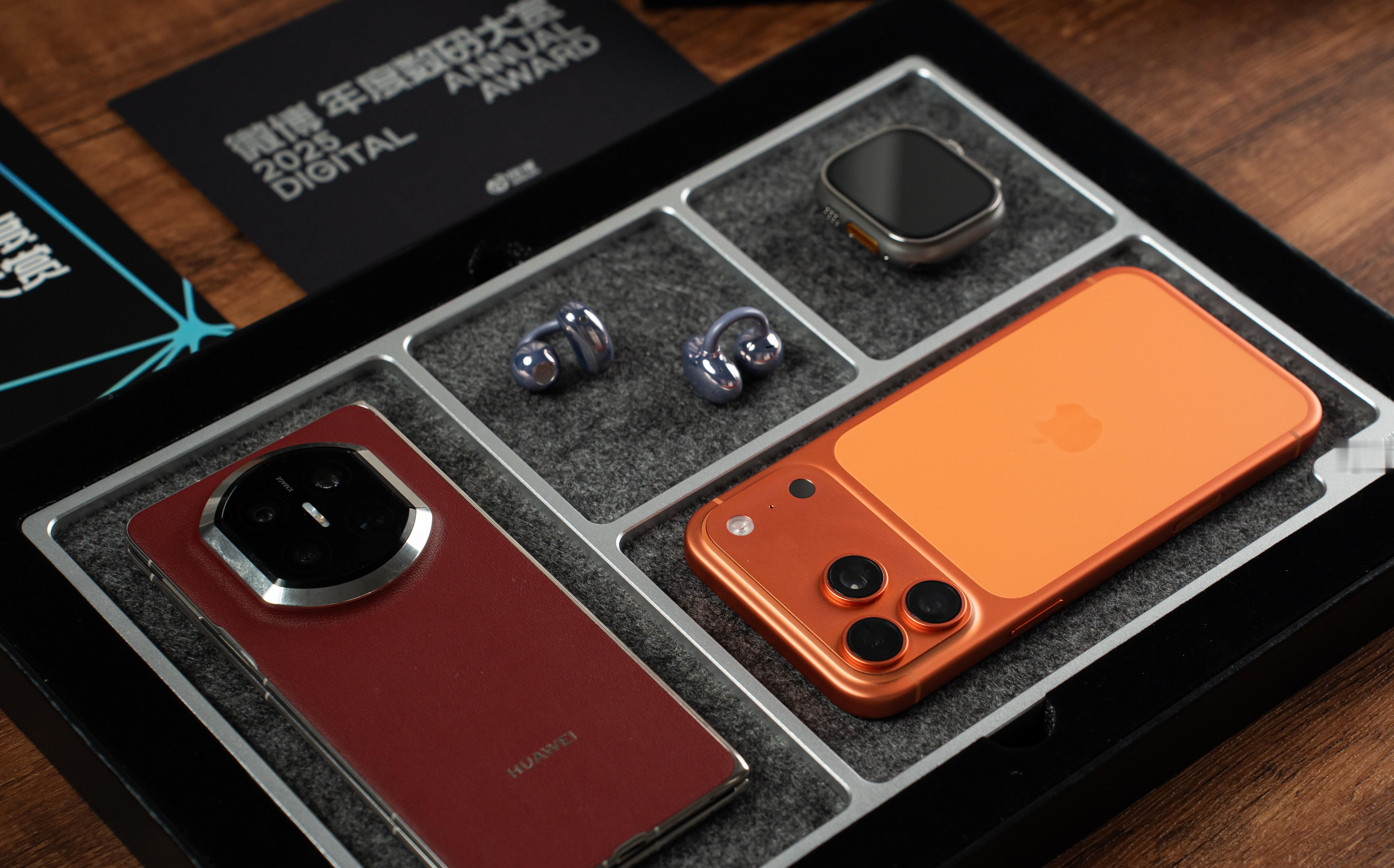 收到2025微博年度数码大赏邀请函~是个很有分量的一体工艺成型的铝合金桌面收纳盘,非常精致有没有~聊到我的年度数码宝藏清单,这几款必须拥有姓名!华为Mate X7:我的年度主力机,妥妥的2025折叠屏工艺巅峰+影像旗舰~第二代红枫影像系统就是光影美学的代名词,往这个托盘上一放,颜值与实用双在线的存在!iPhone 17 Pro Max: 另一款手机选它的原因是,因为续航相对于前几代提升真的太大了,加上焕然一新的外观、A19 Pro芯片的强悍性能,日常用起来丝滑又省心。Apple Watch Ultra 3:手腕上的健康管家+第二块屏幕,它时刻监测着我的状态,不管是运动数据还是日常健康指标都精准拿捏。Vision Pro:虽然沉了点,但每次体验它就像闯进了另一个次元,不管是办公创作还是影音娱乐,都能解锁全新玩法~大家觉得这个“同框”怎么样?如果让你来“填”满这个托盘,2025年的年度数码好物你会放哪些呢?